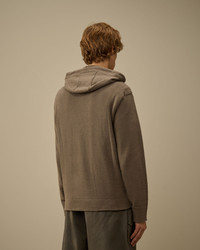 Hooded sweater crafted in soft stretch cotton. The fabric ensures flexibility and comfort while maintaining a refined appearance. The knit features an adjustable hood with a front drawstring, ribbed hood rim, and C.P. Company’s iconic Lens. Finished with contrast stitching at the armholes and neck. Gauge 7. Regular fit. - Adjustable hood with front drawstring - Ribbed hood rim - Armholes and neck contrast stitching - Lens detail - 7 Gauge knit - Regular fit CARE & COMPOSITION Care - Hand wash - Do not bleach - Do not tumble dry - Ironing maximum temperature 110°C - without steam - Do not dry clean - Flat drip dry - Remove detachable accessories before washing Composition - External fabric: 53% Cotton, 27% Polyester, 20% Polyamide / Nylon SIZE & FITTING - Fits true to size, take your normal size - Model is 186 cm-6' 1" / 98-103 cm chest and is wearing a size L PRODUCT PASSPORT PRODUCT - Weaving: Italy - Dyeing: Turkiye - Confection: Tunisia PACKAGING - Minimum percentage of recycled materials 70%
