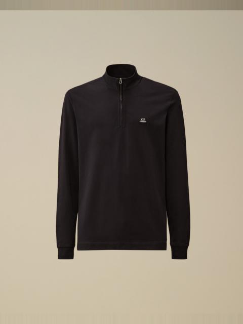 Half zip long sleeve polo crafted in stretch piquet, a textured cotton blend with a soft touch. The polo features a chest embroidered logo patch, and ribbed cuffs. Finished with side vents. Regular fit. - Half zip fastening - Chest embroidered logo patch - Ribbed cuffs - Side vents - Regular fit CARE & COMPOSITION Care - Wash max 30°C - Do not bleach - Do not tumble dry - Ironing maximum temperature 110°C - without steam - Do not dry clean - Dry flat - Wash with similar colours - Wash inside out - Do not expose to heat - Dry inside out Composition - External fabric: 95% Cotton, 5% Elastane / Spandex SIZE & FITTING - Fits true to size, take your normal size - Model is 186 cm-6' 1" / 98-100 cm chest and is wearing a size L PRODUCT PASSPORT PRODUCT - Weaving: China - Dyeing: China - Confection: China PACKAGING - Minimum percentage of recycled materials 70%