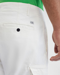 Cargo pants in an ergonomic fit, featuring two cargo pockets, with the C.P. Company Lens detail. The pants are also equipped with belt loops, a zip fly and button fastening. Manufactured in lightweight Stretch Sateen, a matte cotton textile with built-in extensibility, for a flexible and durable fit, and garment dyed for an increased chromatic depth and intensity throughout. - Ergonomic fit - Belt loops - Button and zip fastening - Two cargo pockets - Lens detail - Garment dyed CARE & COMPOSITION CARE - Wash max 30°C - Mild process - Do not bleach - Do not tumble dry - Ironing maximum temperature 110°C - without steam - Do not dry clean - Wash separately - Wash inside out - Iron inside out - Remove detachable accessories before washing COMPOSITION - External fabric: 98% Cotton, 2% Elastane / Spandex SIZE & FITTING - Fits true to size, take your normal size - Model is 186 cm-6' 1"/ 88-91 cm waist and is wearing a size 48