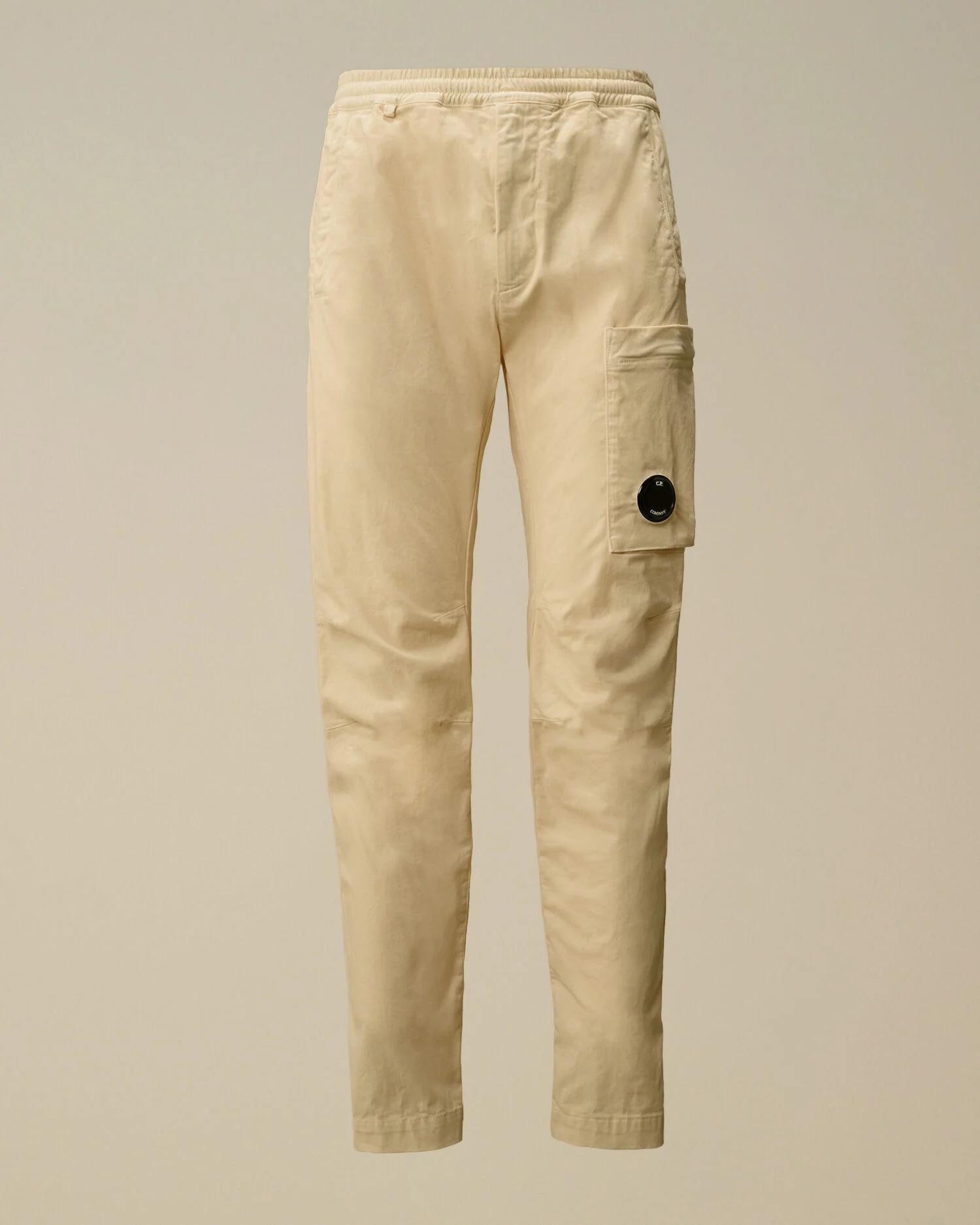 Cargo pants crafted in smooth, soft-textured stretch cotton. The pants feature C.P. Company’s iconic Lens, adjustable drawstring waistband, side pockets, and a cargo zip pocket. Complete with back button pockets with an applied label. Garment dyed. Regular fit. - Adjustable drawstring waistband - Side pockets - Cargo zip pocket with Lens detail - Back button pockets with applied label - Garment dyed - Regular fit CARE & COMPOSITION Care - Wash max 30°C - Mild process - Do not bleach - Do not tumble dry - Ironing maximum temperature 110°C - without steam - Do not dry clean - Line dry - Wash separately - Wash inside out - Iron inside out - Remove detachable accessories before washing Composition - External fabric: 98% Cotton, 2% Elastane / Spandex SIZE & FITTING - Fits true to size, take your normal size - Model is 186 cm-6' 1"/ 88-91 cm waist and is wearing a size 48 PRODUCT PASSPORT PRODUCT - Weaving: Turkiye - Dyeing: Tunisia - Confection: Tunisia PACKAGING - Minimum percentage of recycled materials 70%