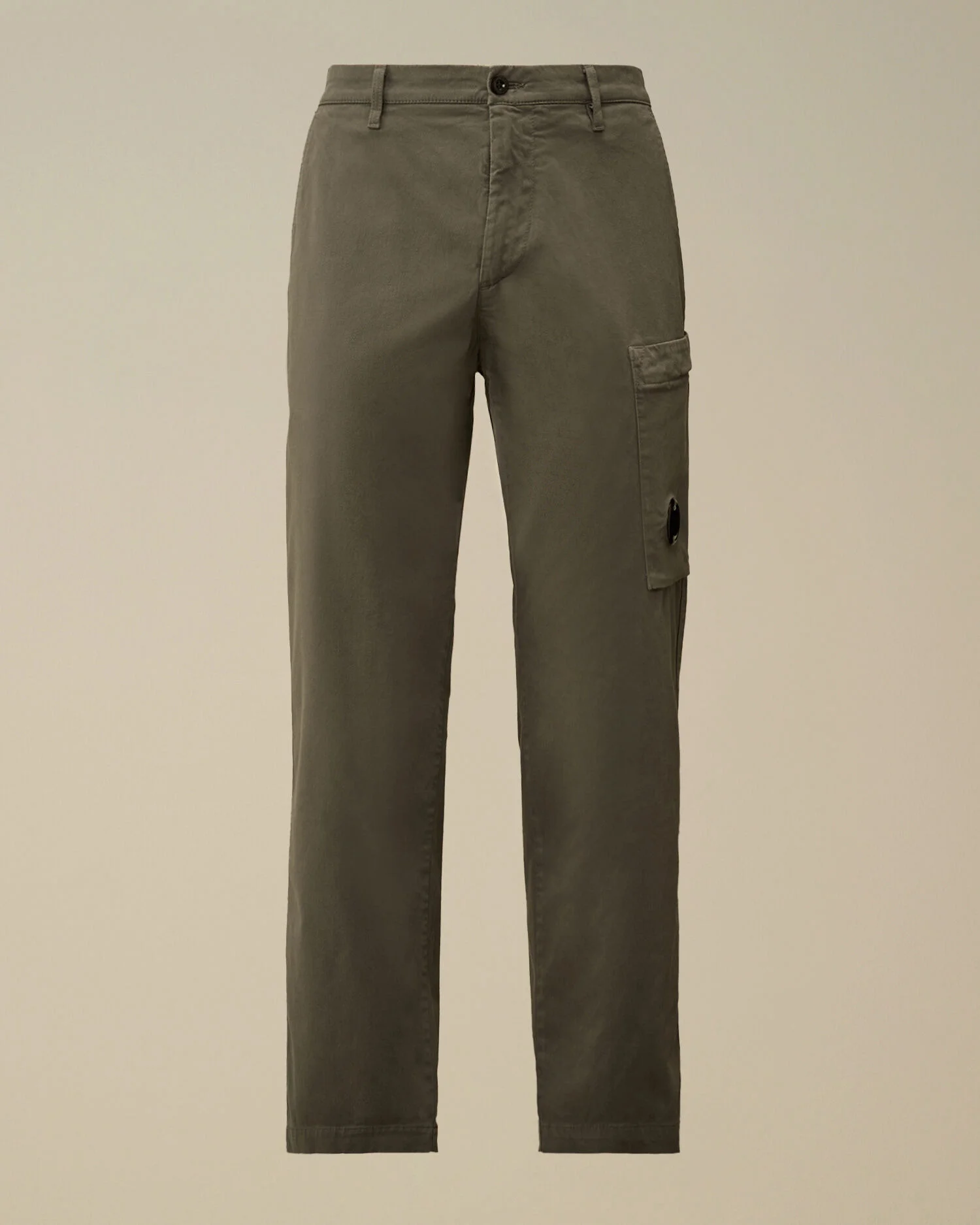 Cargo pants crafted in smooth, soft-textured stretch cotton. The pants feature C.P. Company’s iconic Lens, button and zip fastening, belt loops, side pockets, and a cargo zip pocket. Finished with back welt button pockets with an applied label. Garment dyed. Regular fit. - Button and zip fastening - Belt loops - Side pockets - Cargo zip pocket with Lens detail - Back welt button pockets with applied label - Garment dyed - Regular fit CARE & COMPOSITION Care - Wash max 30°C - Mild process - Do not bleach - Do not tumble dry - Ironing maximum temperature 110°C - without steam - Do not dry clean - Line dry - Wash separately - Wash inside out - Remove detachable accessories before washing Composition - External fabric: 98% Cotton, 2% Elastane / Spandex SIZE & FITTING - Fits true to size, take your normal size - Model is 186 cm-6' 1"/ 88-91 cm waist and is wearing a size 48 PRODUCT PASSPORT PRODUCT - Weaving: Turkiye - Dyeing: Romania - Confection: Romania PACKAGING - Minimum percentage of recycled materials 70%
