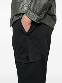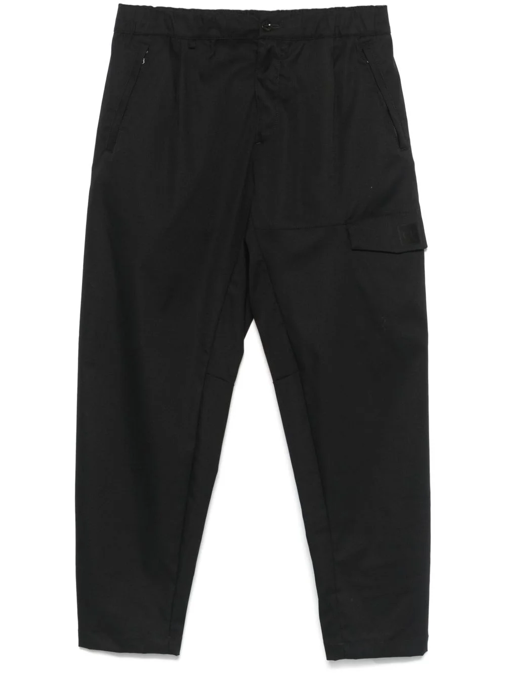 tapered trousers Highlights - Black - Concealed fly and button fastening - Elasticated waistband with internal drawstring - Two side zip-fastening pockets - Side flap pocket Imported Composition Polyester 100% SIZE & FIT Model measurements Height 6 ft 2 in(1.87 m) Bust/Chest 37.79 in(96 cm) Hips 37.79 in(96 cm) Waist 30.31 in(77 cm) FittingInformation Designed for a tapered leg, offering a loose unrestricted fit over the leg with a closer fit towards the ankle Adjust this piece’s waistband to your preference using the drawstring Made from a midweight non-stretch fabric