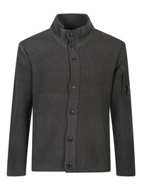 textured button cardigan Highlights - Dark gray - Waffle knit - Button front - High neck - Long sleeves - Goggle pocket Imported Composition Cotton 100% Washing instructions Read Manufacturer Guidelines