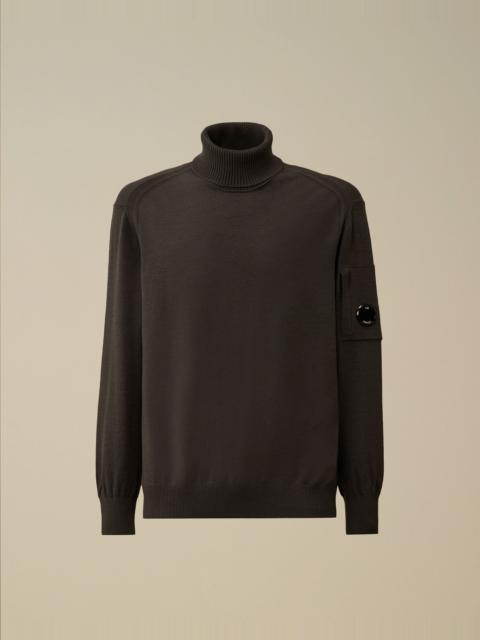 Turtleneck sweater crafted in Extrafine Merino Wool. The soft, lightweight yarn offers a refined texture and superior comfort. The knit features C.P. Company’s iconic Lens, and ribbed cuffs and hem. Finished with contrast stitching. Gauge 12. Regular fit. - Ribbed turtleneck - Contrast stitching - Lens detail - Ribbed cuffs and hem - 12 Gauge knit - Regular fit CARE & COMPOSITION Care - Hand wash - Do not bleach - Do not tumble dry - Ironing maximum temperature 110°C - without steam - Do not dry clean - Dry flat - Remove detachable accessories before washing Composition - External fabric: 88% Virgin wool, 12% Polyester SIZE & FITTING - Fits true to size, take your normal size - Model is 186 cm-6' 1" / 98-103 cm chest and is wearing a size L PRODUCT PASSPORT PRODUCT - Weaving: Bulgaria - Dyeing: Bulgaria - Confection: Bulgaria PACKAGING - Minimum percentage of recycled materials 70%
