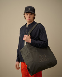 Bag crafted in garment dyed broken nylon twill. - Carry handle - Flap snap closure - Adjsutable hooks - Embroidered logo detail - Inner zip pocket CARE & COMPOSITION Care - Wash max 30°C - Mild process - Do not bleach - Do not tumble dry - Ironing maximum temperature 110°C - without steam - Do not dry clean - Wash separately - Do not iron decorations Composition - External fabric: 100% Polyamide / Nylon - Lining: 100% Polyester PRODUCT PASSPORT PRODUCT - Weaving: Korea - Dyeing: China - Confection: China - Releases plastic microfibers into the environment during washing PACKAGING - Minimum percentage of recycled materials 70%