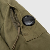 - 19CMOW095A11-0305G-652 - Capers - 100% Polyamide/Nylon - Lining: Polyamide/Nylon - Garment dyed - Front two-way zipper closure under snap button placket - Two front welted pockets with flap and snap button closure - Pullover hood with adjustable visor - Sleeve pocket with zipper closure - C.P. Company Lens detailing on the left sleeve - Adjustable snap button cuffs - Adjustable drawcord waist - Regular fit - Made in Romania