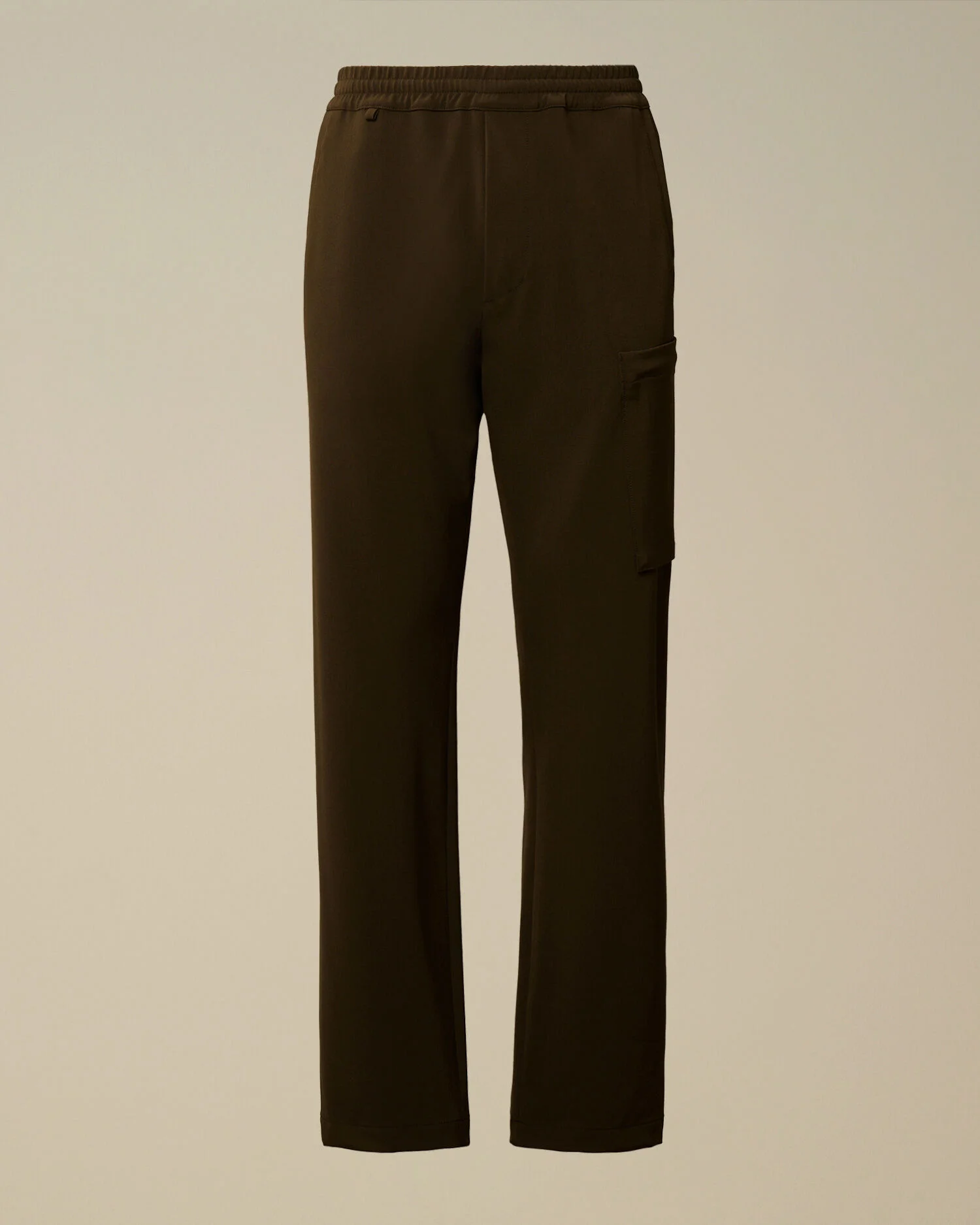 Cargo pants crafted in wool Gabardine. The pants feature an adjustable drawstring waistband with a hidden zip fastening and side pockets. Complete with a cargo zip pocket and a back snap pocket with an applied logo label. Regular fit. - Adjustable drawstring waistband with hidden zip fastening - Side pockets - Cargo zip pocket - Back snap pocket with applied logo label - Regular fit CARE & COMPOSITION Care - Wash max 30°C - Very mild process - Do not bleach - Do not tumble dry - Ironing maximum temperature 110°C - without steam - Do not dry clean - Line dry in the shade - Wash separately - Wash inside out - Do not twist or wring - Iron inside out Composition - External fabric: 53% Polyester, 42% Wool, 5% Elastane / Spandex SIZE & FITTING - Fits true to size, take your normal size - Model is 186 cm-6' 1"/ 88-91 cm waist and is wearing a size 48 PRODUCT PASSPORT PRODUCT - Weaving: Italy - Dyeing: Italy - Confection: Tunisia - Releases plastic microfibers into the environment during washing PACKAGING - Minimum percentage of recycled materials 70%