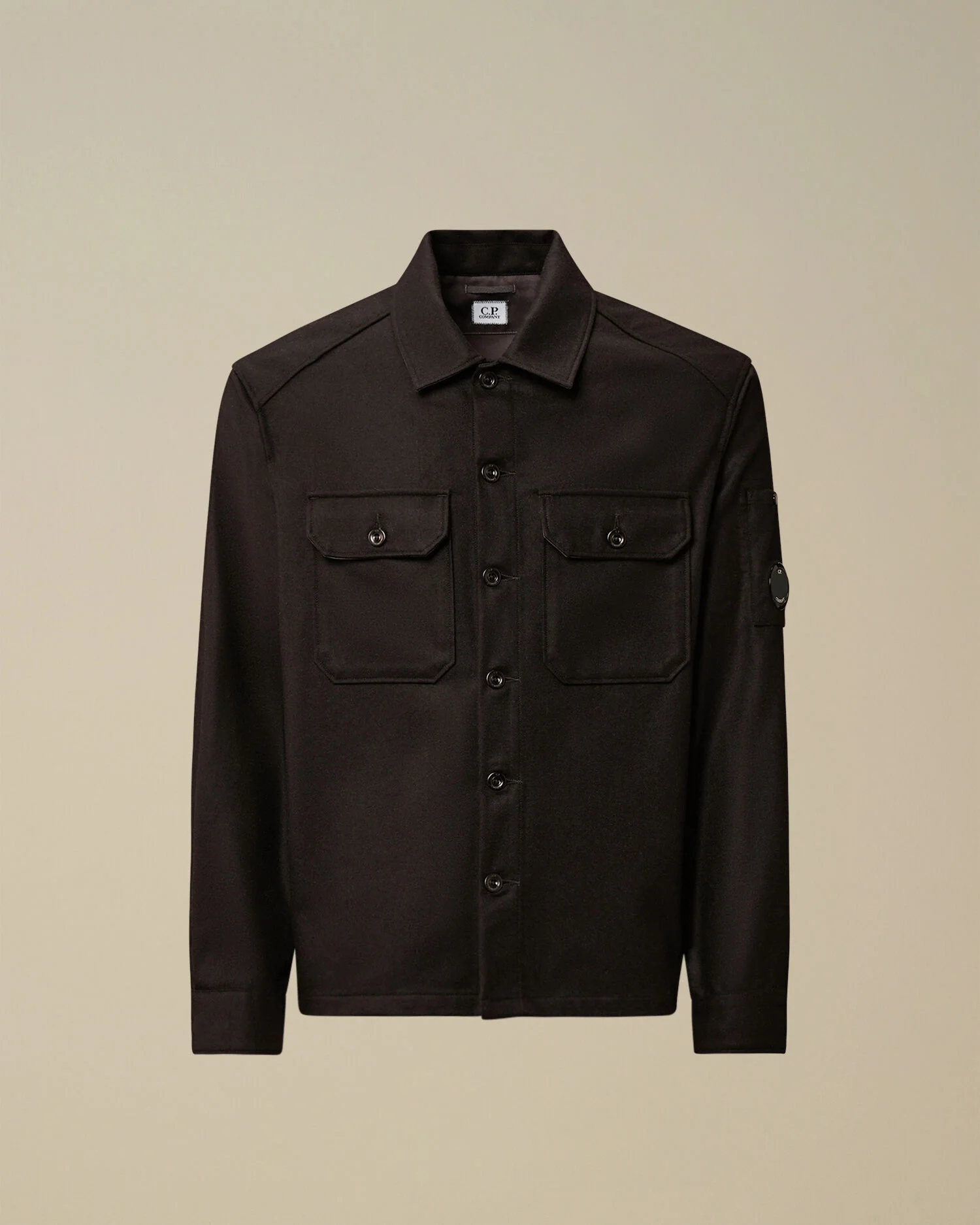 Overshirt crafted in felted fabric, offering a soft texture and comfortable feel. The overshirt features a classic collar, C.P. Company’s iconic Lens, and button fastening. Complete with chest patch button pockets and adjustable button cuffs. Regular fit. - Classic collar - Button fastening - Chest patch button pockets - Lens detail - Adjustable button cuffs - Regular fit CARE & COMPOSITION Care - Do not wash - Do not bleach - Do not tumble dry - Ironing maximum temperature 110°C - without steam - Dry cleaning in tetrachloroethene - mild process - Wash separately - Do not soak - Remove detachable accessories before washing - Do not expose the garment to direct sunlight or artificial light Composition - External fabric: 80% Wool, 20% Polyamide / Nylon - Secondary fabric: 65% Polyester, 35% Cotton SIZE & FITTING - Fits true to size, take your normal size - Model is 186 cm-6' 1" / 98-103 cm chest and is wearing a size L PRODUCT PASSPORT PRODUCT - Weaving: Italy - Dyeing: Italy - Confection: Romania PACKAGING - Minimum percentage of recycled materials 70%