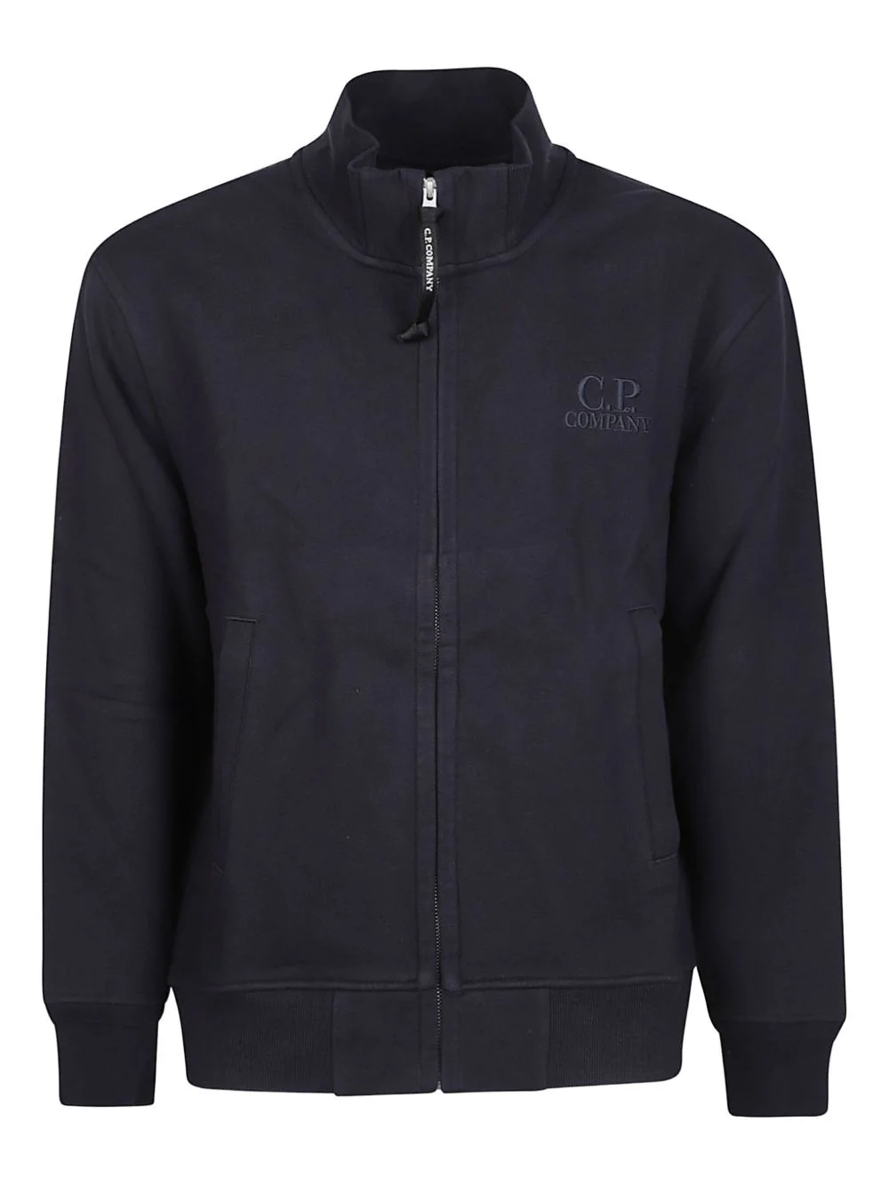 zip-neck cotton sweatshirt Highlights - Navy blue - Zip fastening - High neck - Long sleeves - Ribbed cuffs - Embroidered logo - C.p. company suggests removing any detachable accessories before washing. Imported Composition Cotton 100% Washing instructions Read Manufacturer Guidelines