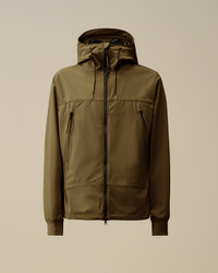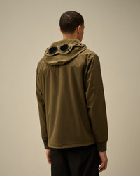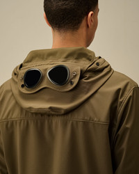 Goggle jacket crafted in C.P. Shell-R, a multifilament 3-layer softshell stretch, made from recycled polyester yarn. Global Recycled Standard certified (GRS). Bonded for water column of 5000mm. Windproof anti-drop treated. Regular fit. - Adjustable Goggle hood - Two-way full zip fastening - Side zip pockets - Elasticated cuffs - Regular fit CARE & COMPOSITION CARE - Wash max 30°C - Mild process - Do not bleach - Do not tumble dry - Ironing maximum temperature 110°C - without steam - Do not dry clean - Line dry - Wash separately - Wash inside out - Remove detachable accessories before washing COMPOSITION - Lining: 100% Polyamide / Nylon - Inner main fabric: 100% Polyester - External main fabric: 92% Polyester, 8% Elastane / Spandex SIZE & FITTING - Fits true to size, take your normal size - Model is 186 cm-6' 1" / 98-103 cm chest and is wearing a size L