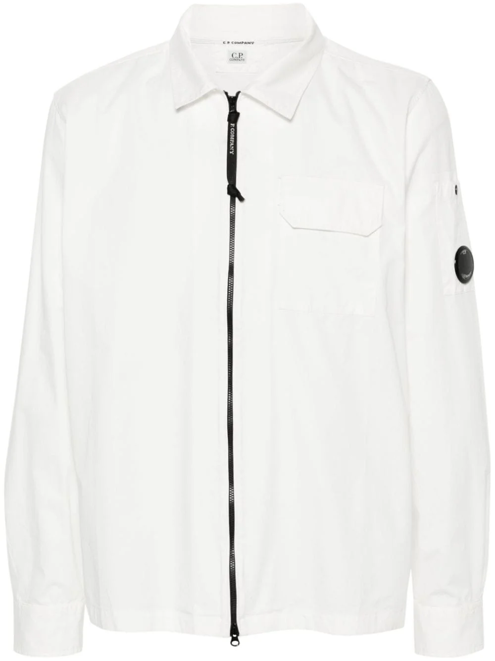 zip-up gabardine overshirt Highlights - White - Cotton - Poplin texture - Signature lens detail - Front two-way zip fastening - Classic collar - Long sleeves - Sleeve patch pocket - Signature lens detail - Buttoned cuffs - Chest flap pocket - Straight hem Imported Composition Cotton 100% SIZE & FIT Model measurements Height 6 ft 1 in(1.86 m) Bust/Chest 36.61 in(93 cm) Hips 37 in(94 cm) Waist 28.74 in(73 cm) FittingInformation Designed for a regular fit, allowing for a comfortably loose fit throughout the body Made from a midweight non-stretch fabric