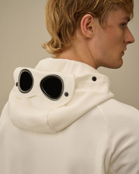 Goggle sweatshirt crafted in Diagonal Raised Fleece, a medium-weight brushed diagonal-weave cotton. The soft fabric ensures comfort and ease of movement. The sweatshirt features C.P. Company's iconic adjustable Goggle hood, side zip pockets, and ribbed cuffs and hem. Complete with a thumb hole on the cuffs. Regular fit. - Adjustable Goggle hood - Side zip pockets - Ribbed cuffs and hem - Thumb hole on cuffs - Regular fit CARE & COMPOSITION Care - Wash max 30°C - Do not bleach - Do not tumble dry - Ironing maximum temperature 110°C - without steam - Do not dry clean - Dry flat - Wash with similar colours - Wash inside out - Do not iron decorations - Do not expose to heat - Do not soak - Remove detachable accessories before washing - Dry inside out Composition - External fabric: 100% Cotton SIZE & FITTING - Fits true to size, take your normal size - Model is 186 cm-6' 1" / 98-103 cm chest and is wearing a size L PRODUCT PASSPORT PRODUCT - Weaving: China - Dyeing: China - Confection: Myanmar PACKAGING - Minimum percentage of recycled materials 70%