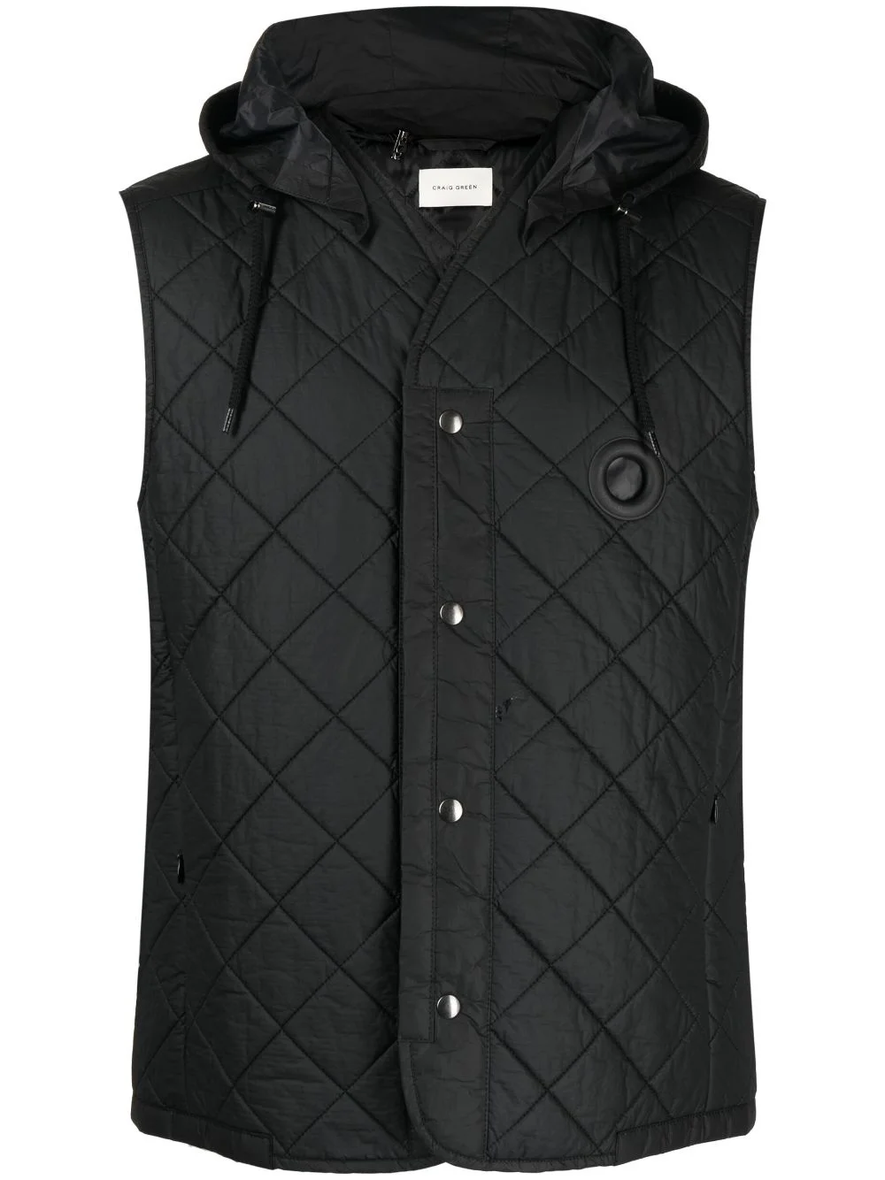 button-up quilted gilet Highlights - Black - Padded design - Quilted - Detachable drawstring hood - Front button fastening - Sleeveless - Straight hem Made in Italy Composition Polyester 84%, Polyurethane 16% SIZE & FIT Model measurements Height 6 ft 2 in(1.88 m) Bust/Chest 31.88 in(81 cm) Hips 35.82 in(91 cm) Waist 27.55 in(70 cm) FittingInformation Designed for a slim fit, offering a comfortable fit that sits just away from the body Made from a padded non-stretch fabric, giving it no natural elasticity This piece fits true to size – if you would prefer a looser fit to layer, take one size up Washing instructions Dry Clean Only