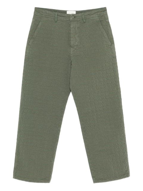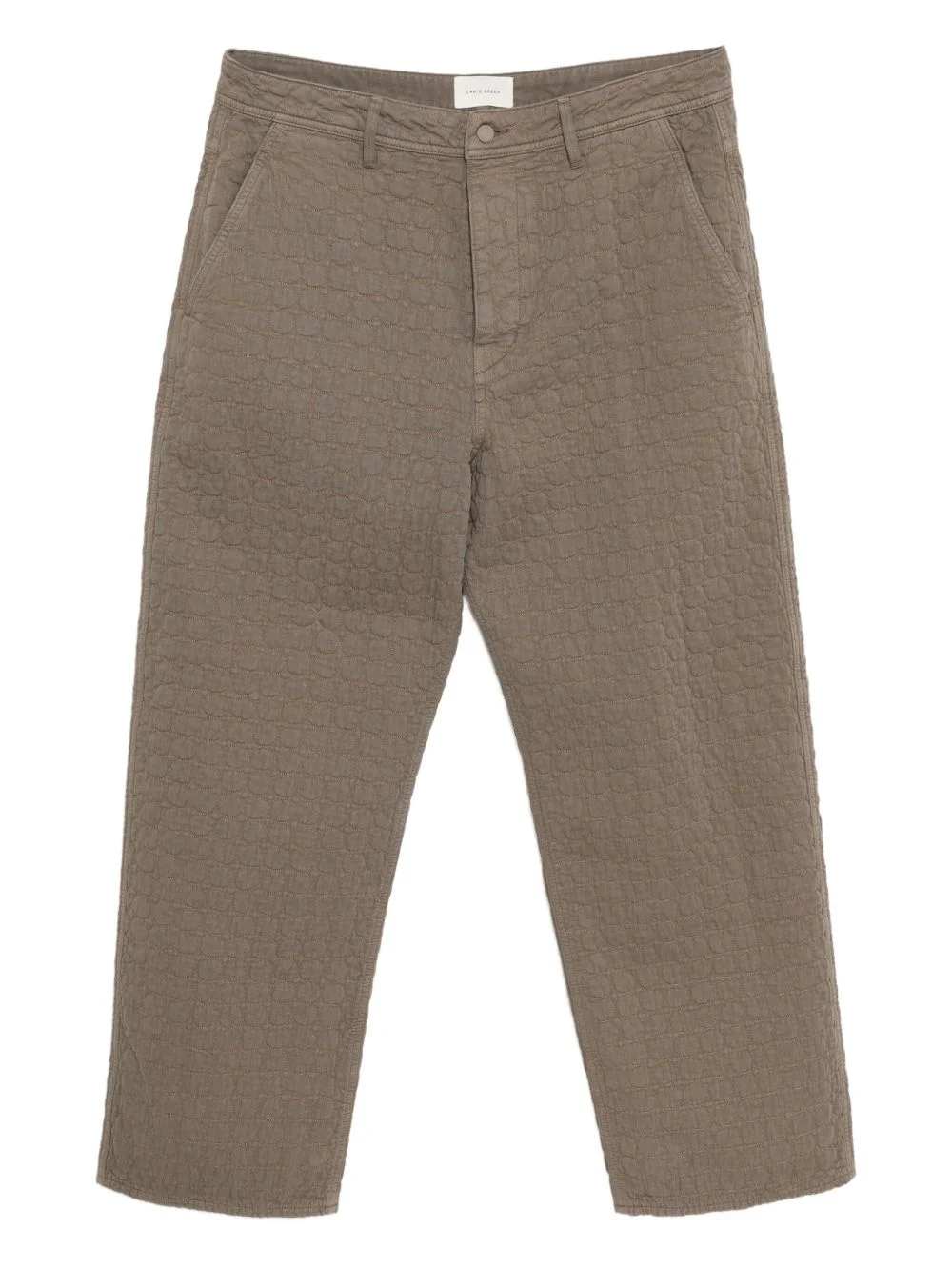 circle-quilted trousers Highlights - Light brown - Front button and zip fastening - Two side slash pockets - Two rear patch pockets Made in Italy Composition Cotton 100% SIZE & FIT Model measurements Height 6 ft 1 in(1.85 m) Bust/Chest 40.15 in(102 cm) Hips 37.79 in(96 cm) Waist 29.52 in(75 cm) FittingInformation Designed for a straight-leg, allowing for an unrestricted and comfortable fit over the leg Made from a midweight non-stretch fabric Washing instructions Hand Wash