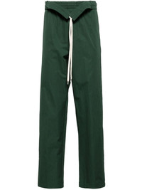 cotton tapered trousers Highlights - Forest green - Cotton - Poplin texture - Elasticated waistband with internal drawstring - Belt loops - Detachable and adjustable waist belt - Two side slash pockets - Rear patch pocket - Tapered leg Imported Composition Cotton 100% Washing instructions Hand Wash