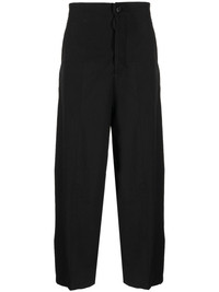 cotton wide-leg trousers black cotton front button fastening rear tie fastening two side welt pockets wide leg Imported Composition Body: Cotton 100% SIZE & FIT Model measurements Height 6 ft 2 in(1.87 m) Bust/Chest 34.25 in(87 cm) Hips 36.22 in(92 cm) Waist 29.52 in(75 cm) FittingInformation This piece fits true to size. We recommend you get your regular size Designed for a slim fit at the waist and loose over the leg Made with a mid-weight non-stretch fabric Washing instructions Hand Wash