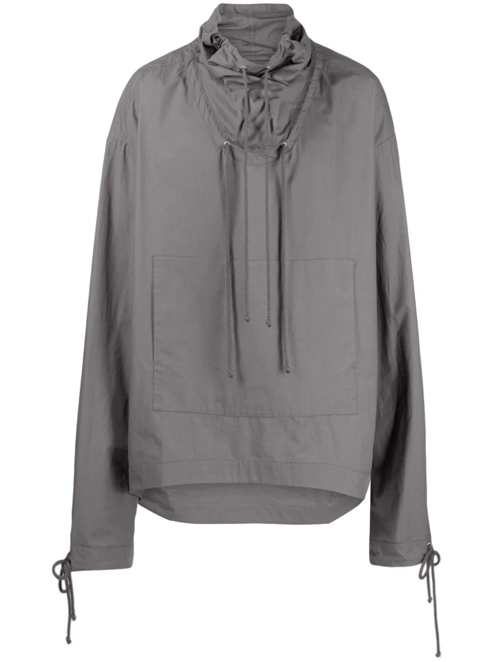curved-hem cotton T-shirt Highlights - Dark grey - Cotton - Drawstring neck - Front patch pocket - Long sleeves - Drawstring hem - Curved hem Imported Composition Body: Cotton 100% SIZE & FIT Model measurements Height 6 ft 2 in(1.87 m) Bust/Chest 31.49 in(80 cm) Hips 37.79 in(96 cm) Waist 27.95 in(71 cm) FittingInformation Designed for an oversized fit, offering additional room throughout Constructed with additional length on the sleeve Made from a lightweight non-stretch fabric This piece fits true to size – if you would prefer a closer fit, take one size down Washing instructions Dry Clean Only