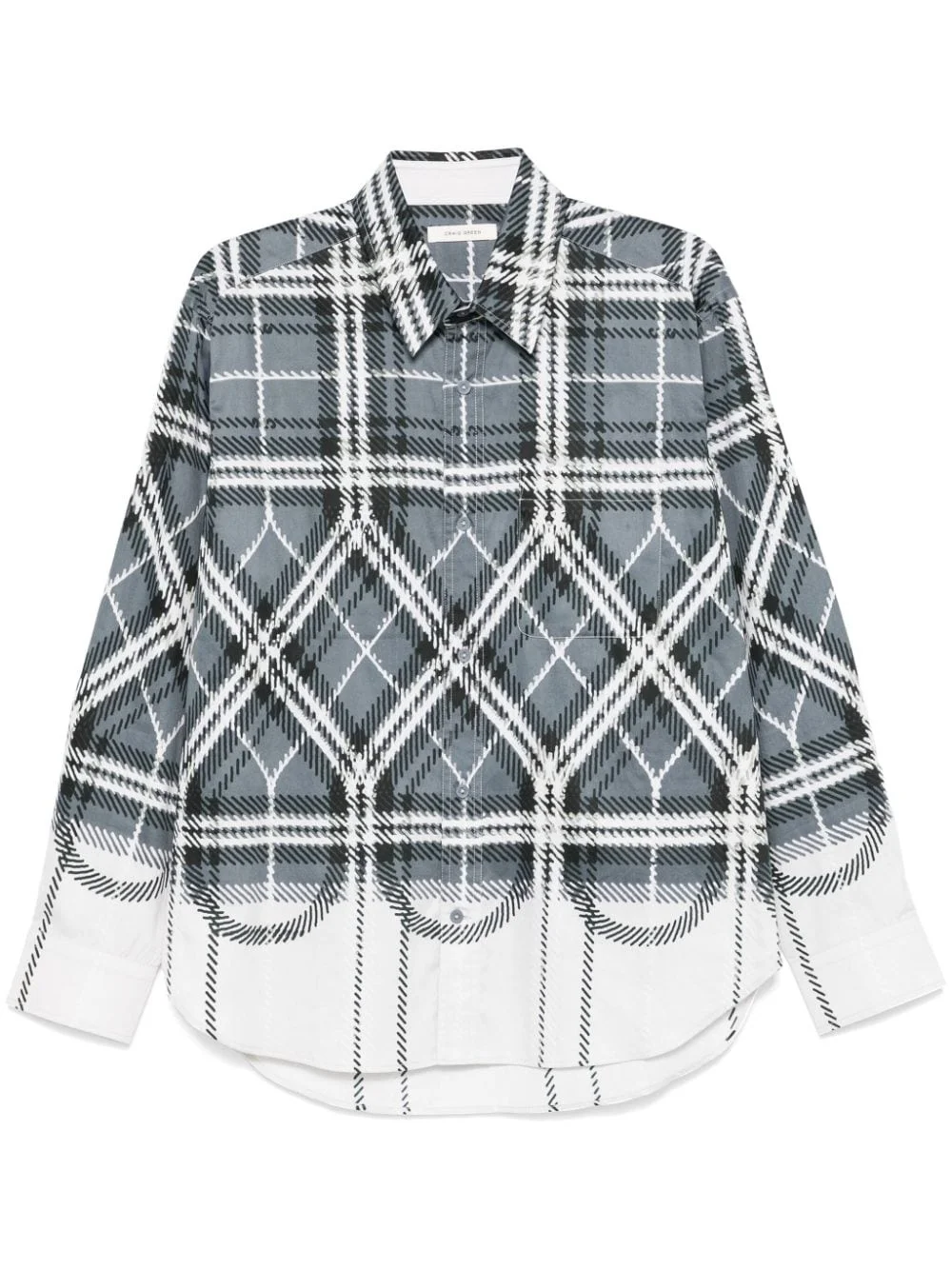 plaid-check faded shirt Highlights - Grey/white - Cotton - Twill weave - Plaid check print - Faded effect - Front button fastening - Straight-point collar - Long sleeves - Pleat detailing - Buttoned cuffs - Chest patch pocket - Unlined - Curved hem Made in United Kingdom Composition Cotton 100% SIZE & FIT Model measurements Height 6 ft 0 in(1.84 m) Bust/Chest 35.82 in(91 cm) Hips 37 in(94 cm) Waist 28.34 in(72 cm) FittingInformation Designed for a regular fit, allowing for a comfortably loose fit throughout the body Made from a midweight non-stretch fabric