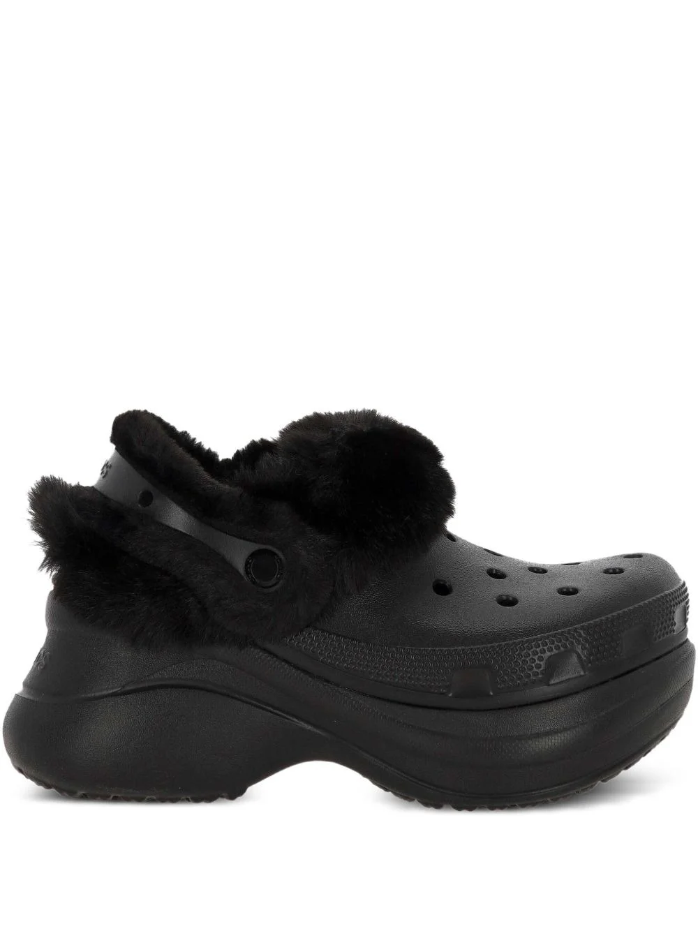 Bae textured lined platform slip-on Highlights - Black - Faux-fur-trim - Closed ventilation holes - Platform-sole Imported Composition Outer: Thermoplastic 95%, Polyester 5% Lining: Artificial Fur 100% Sole: Rubber 100%