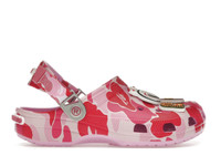 When A Bathing Ape puts its signature spin on a Crocs silhouette, the end result is the Crocs Classic Clog A Bathing Ape ABC Camo Pink.Streetwear swagger meets everyday comfort with this classic silhouette clog. This limited-edition slip-on model is wrapped in a vibrant pink and red ABC camo print. Crafted from Croslite foam for lightweight wearability, this clog comes decked out with exclusive BAPE-themed Jibbitz that include the iconic Ape Head, Baby Milo, and Shark Face. Metallic silver rivets add a flash of flair, and these details all produce an unmistakable character to this shoe.We love how the Crocs Classic Clog A Bathing Ape ABC Camo Pink’s insole has both BAPE and Crocs branding, while rubberized logos of the two brands on the heel strap and heel also nod to the partnership. This shoe retailed for $80 when it was released on March 8, 2025. - Style 209627-6I2 - Colorway ABC Camo/Pink - Retail Price 80 - Release Date 2025-03-08 - Featured false - Requester Andrew H - Uploaded By MM