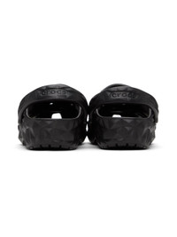 Lightweight sculptural EVA foam rubber slip-on sandals in black. · Perforated detailing at vamp · Logo-embossed convertible slingback strap · Molded rubber footbed · Treaded rubber sole · Logo printed hardware Supplier color: Black