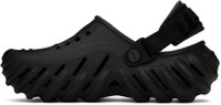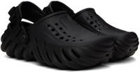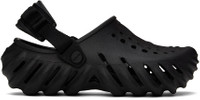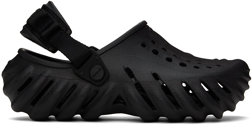 Lightweight Croslite™ EVA foam rubber slip-on sandals in black. · Perforated detailing throughout · Logo embossed at vamp · Logo patch at convertible slingback strap · LiteRide™ molded rubber footbed · Sculptural platform rubber midsole · Treaded rubber sole · Logo-engraved hardware · Platform: H2.5" Supplier color: Black