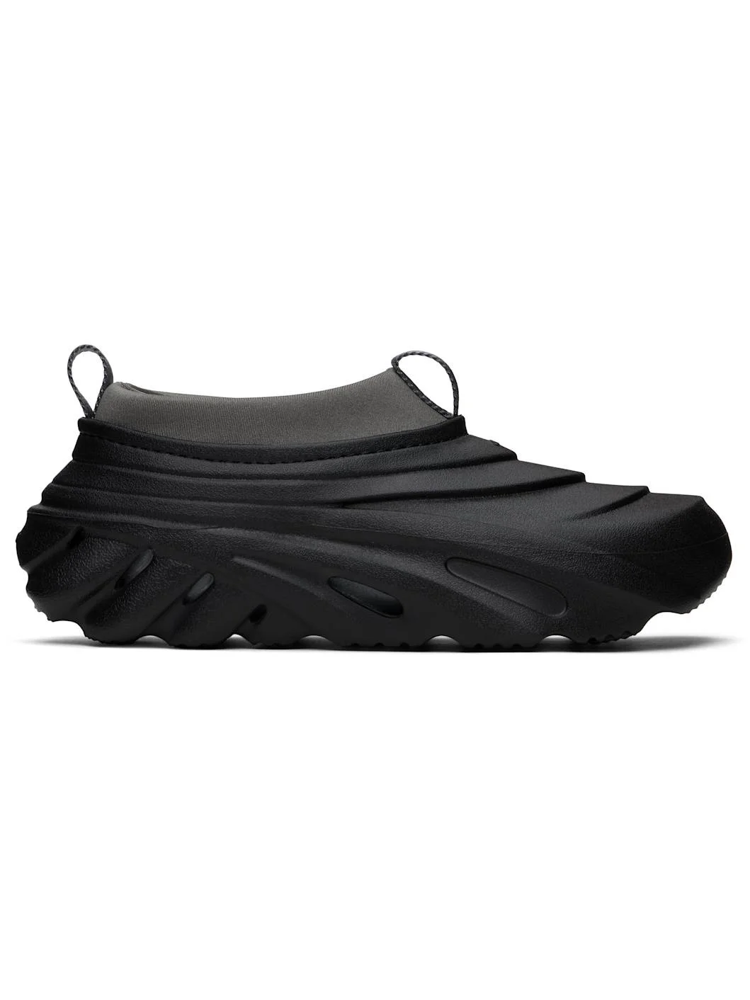 Sculptural rubber slip-on loafers in black. · Cutouts throughout · Logo embossed at vamp and heel counter · Pull-loops at padded jersey collar · LiteRide™ molded rubber footbed · Bonded jersey lining · Treaded rubber sole Supplier color: Midnight Upper: rubber, textile. Sole: rubber. Made in China 251209M231004