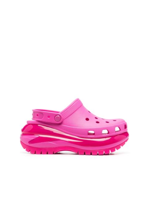 perforated platform clogs black fully perforated slingback strap platform sole rubber sole Imported Composition Lining: Polyurethane 100% Sole: Rubber 100% Outer: Polyurethane 100% SIZE & FIT Measurement HEEL 2.95 in(7.5 cm) Sole height 1.77 in(4.5 cm)
