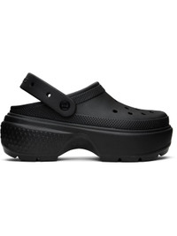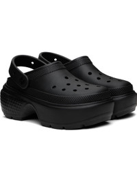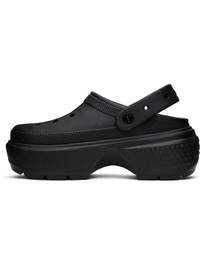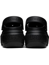 Lightweight Croslite™ foam rubber slip-on sandals in black. · Perforations at vamp · Logo-embossed convertible slingback strap · Logo embossed at heel · Crocs Comfort™ molded rubber footbed · Textured rubber platform midsole · Lugged rubber sole · Logo-engraved hardware · Platform: H2.5" Supplier color: Black Rubber. Made in Viet Nam 251209M234016