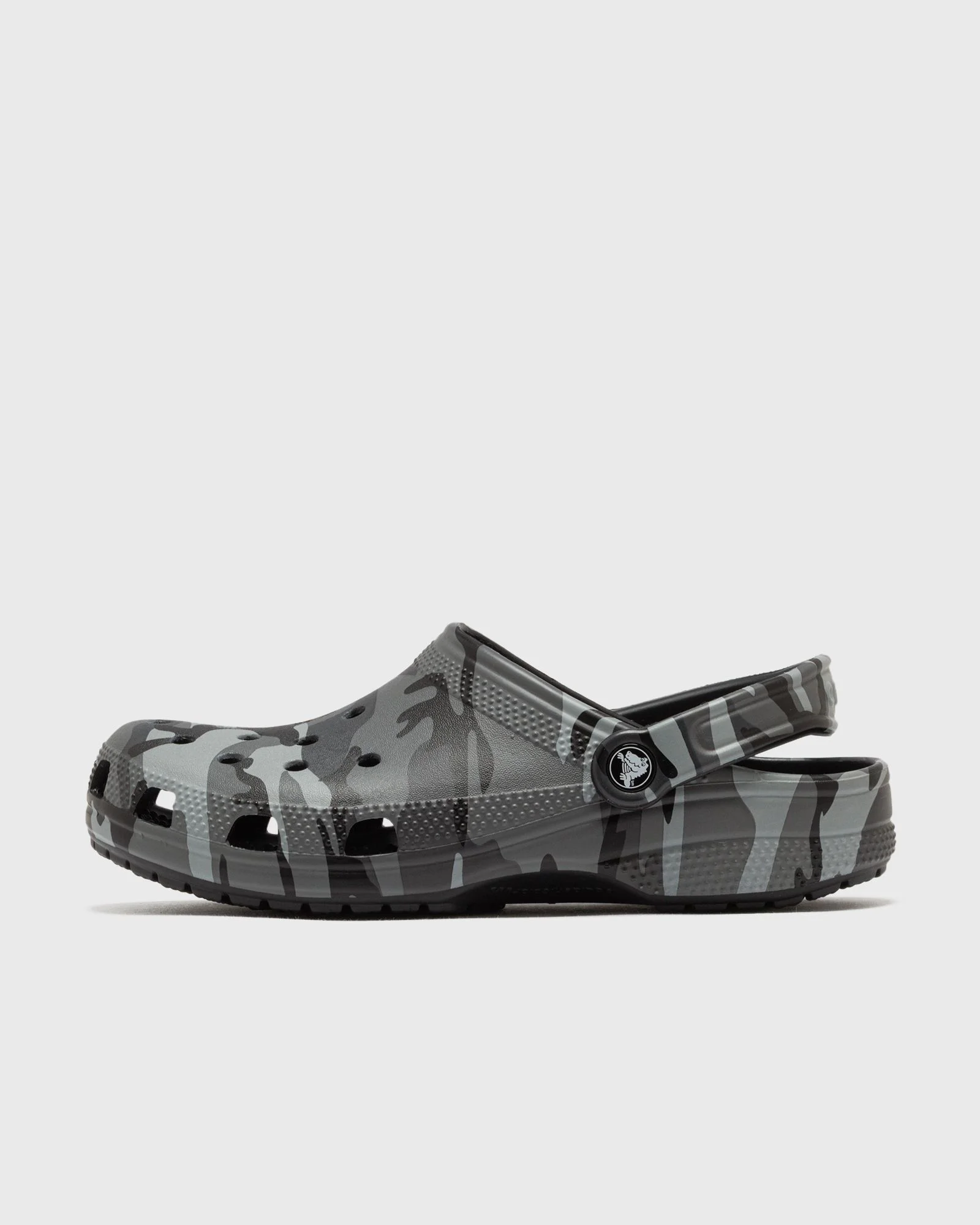 The product crocs - Classic Camouflage Clog in the color BLACK/SLATE GREY is available at BSTN. Article number: 211936-0DD Gender: men Color: BLACK/SLATE GREY Material: 100% Plastic