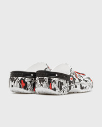 Mickey and Minnie Mouse come to life on this playful version of the Crocs Classic Clog. Detailed graphics featuring their cheerful expressions adorn the upper and are complemented by oversized, attached Mickey and Minnie charms. Plus, Jibbitz clips offer endless customization options. - Upper with attached Mickey and Minnie Mouse pins - Flip-flop heel straps for a secure fit - Easy to clean - Highly breathable design - Personalize your style with Jibbitz pins - Iconic Crocs Comfort: Lightweight. Flexible. 360° comfort. Article number: 211483-90H Gender: men,women Color: MULTI Material: 100% Plastic
