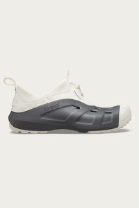 The Quick Trail is CROCS design team's freshly inspired riff off the outdoor water shoe from 2010. It utilizes both molded Croslite™ and a technical textile upper so you get the best of both worlds. The simple branding helps elevate the shoe, and adding new details like reflective prints bring the shoe into the modern outdoor space where fashion and practicality intertwine. - Synthetic upper - Mesh lining - Padded collar - Crocs branding at tongue - Crocs logo branding at lateral sides - Cut-out detailing - Reflective details at tongue - Drawstring-adjustable lace closure - Heel and tongue pulls - Rubber outsole - Slate
