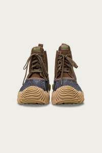 A reimagining of a generational classic, the Salehe Bembury Cypress Boot takes the duck boot silhouette and adds modern styling. This tri-color boot features a green canvas upper that meets an espresso rubber top and hazelnut sole. Salehe Bembury’s fingerprint-inspired ridged sole is the definitive detail of the Pollex collection and wraps the base of the boot. This blend of rugged and water-resistant materials will have you covered in the elements for a silhouette that’s as functional as it is comfortable. - Exclusive mold designed by Salehe Bembury - Rugged canvas upper - Waterproof rubber base - Reinforced double and triple stitching around upper - Dramatic "Fingerprint" concave ridged sole allow for multi-directional traction - Iconic Crocs Comfort™: Lightweight. Flexible. 360-degree comfort. - Sizing in US Men's *Special drops are only eligible for store credit or exchange.