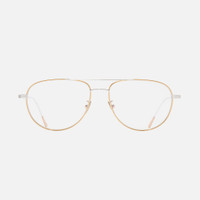 The AUOP 0002 is an undersized aviator frame with a distinctly refined character, crafted in either 18K White Gold Rhodium, 18K Gold, 18K Rose Gold, or a combination of precious metals Yellow Gold 24K + Rhodium 18K. An elevated version of our staple 1099, first launched in 2010, this frame offers visual impact paired with lightness and functionality. Details - Handcrafted in Italy by expert craftspeople, read more about our craftsmanship story - New Temple Tip inscribed with 'Aurum' - Hypoallergenic Nosepads - Galvanised Precious Metal Finish - Need help? Read our full Glossary of Terms Size & Fit SKU: AUOP-0002-56-04 Frame shape: Aviator Lens width (mm): 56 Temple length (mm): 145 Bridge width (mm): 15