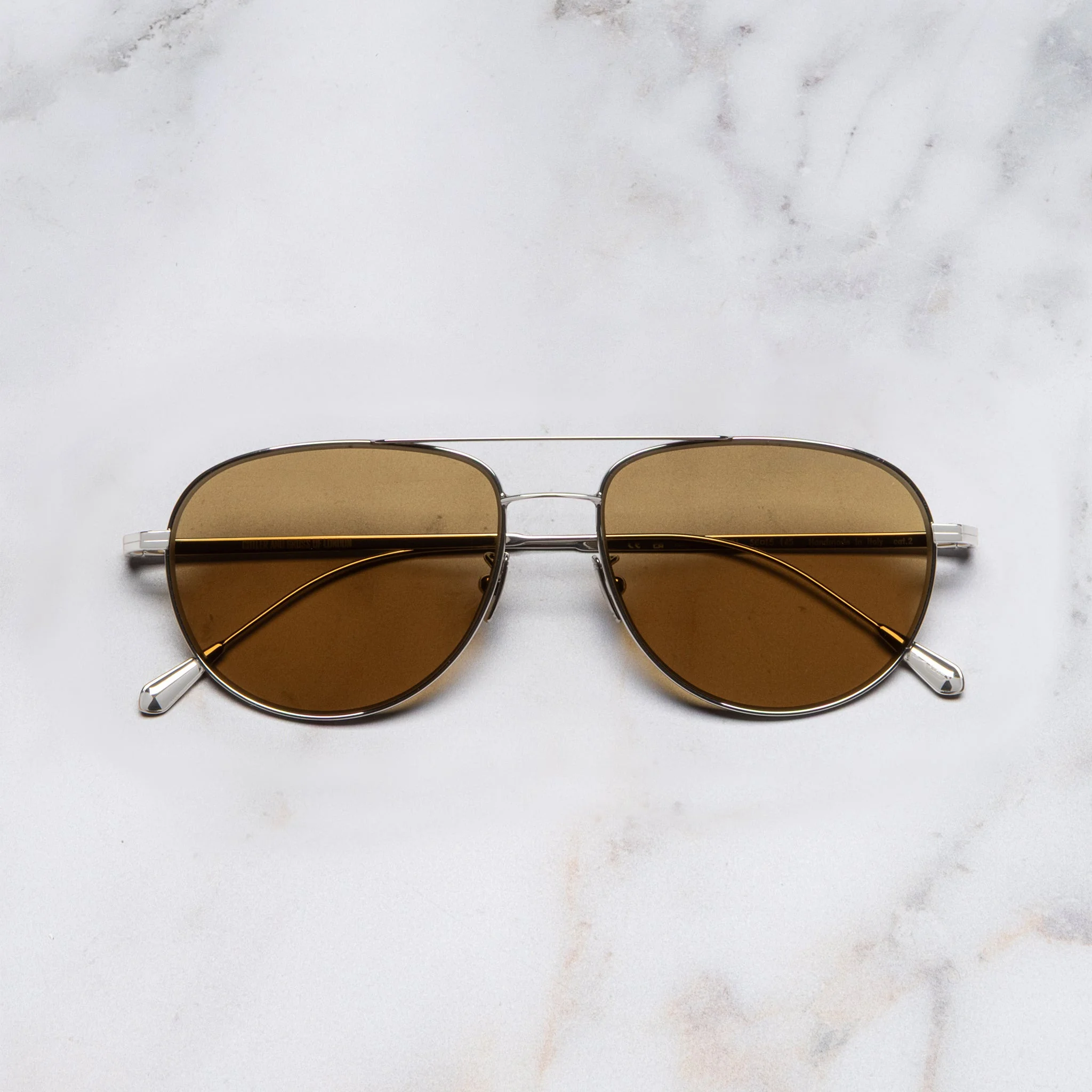 An elevated sunglass version of our staple 1099, first launched in 2010, the AUSN 0002 offers visual impact paired with lightness and functionality. Crafted from Swiss alloy stainless steel plated in either 18K White Gold Rhodium, 18K Gold, 18K Rose Gold, or a combination of precious metals Yellow Gold 24K + Rhodium 18K. Details - Handcrafted in Italy by expert craftspeople, read more about our craftsmanship story - New Temple Tip inscribed with 'Aurum' - Hypoallergenic Nosepads - Galvanised Precious Metal Finish - Need help? Read our full Glossary of Terms Size & Fit SKU: AUSN-0002-56-01 Frame shape: Aviator Temple length (mm): 145 Lens width (mm): 56 Bridge width (mm): 15