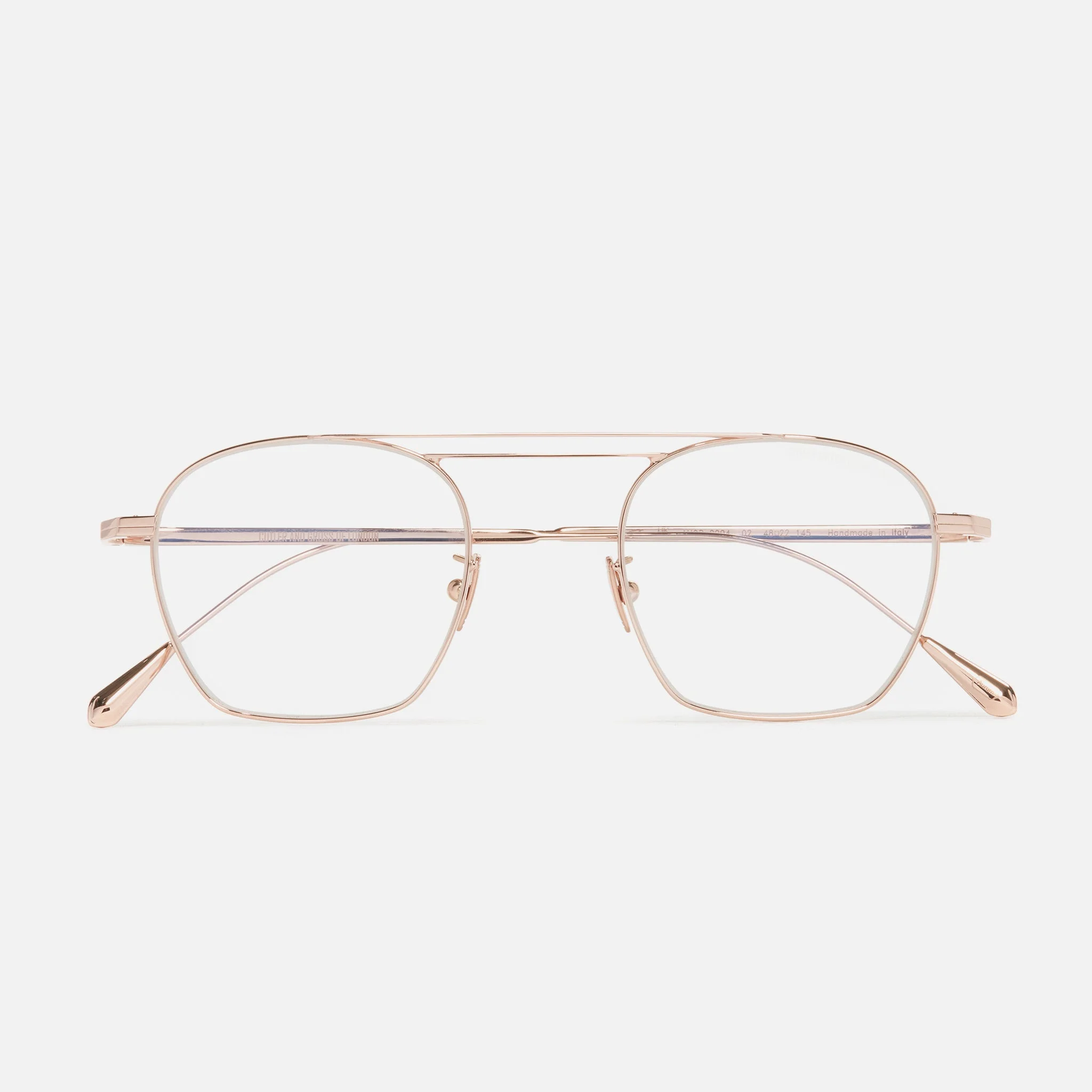 Octagonal edges and a striking double browline elevate the navigator-inspired 0004. The ultra-light design is handcrafted in Italy from polished precious metals and fitted with comfortable nose pads. Available in 18K White Gold Rhodium, 18K Gold, 18K Rose Gold, and a combination of 24K Yellow Gold and 18K Rhodium. Details - Handcrafted in Italy by expert craftspeople, read more about our craftsmanship story - Double browline - Adjustable nose pads - Engraved logo inside temple - Need help? Read our full Glossary of Terms Size & Fit SKU: AUOP-0004-48-02 Frame shape: Aviator Lens width (mm): 48 Temple length (mm): 145 Bridge width (mm): 22