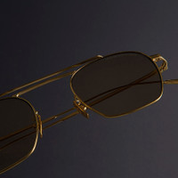 The 0004 sunglass presents a subtle update on the classic navigator frame, sculpted with octagonal edges and a double browline. It's handcrafted in Italy from polished precious metals to an ultra-light design. Available in 18K White Gold Rhodium, 18K Gold,18K Rose Gold, and a combination of 24K Yellow Gold and 18K Rhodium. Details - Handcrafted in Italy by expert craftspeople, read more about our craftsmanship story - Double-curved nose bridge - Adjustable nose pads - Engraved logo inside temple - Need help? Read our full Glossary of Terms Size & Fit SKU: AUSN-0004-48-03 Frame shape: Aviator Temple length (mm): 145 Lens width (mm): 48 Bridge width (mm): 22