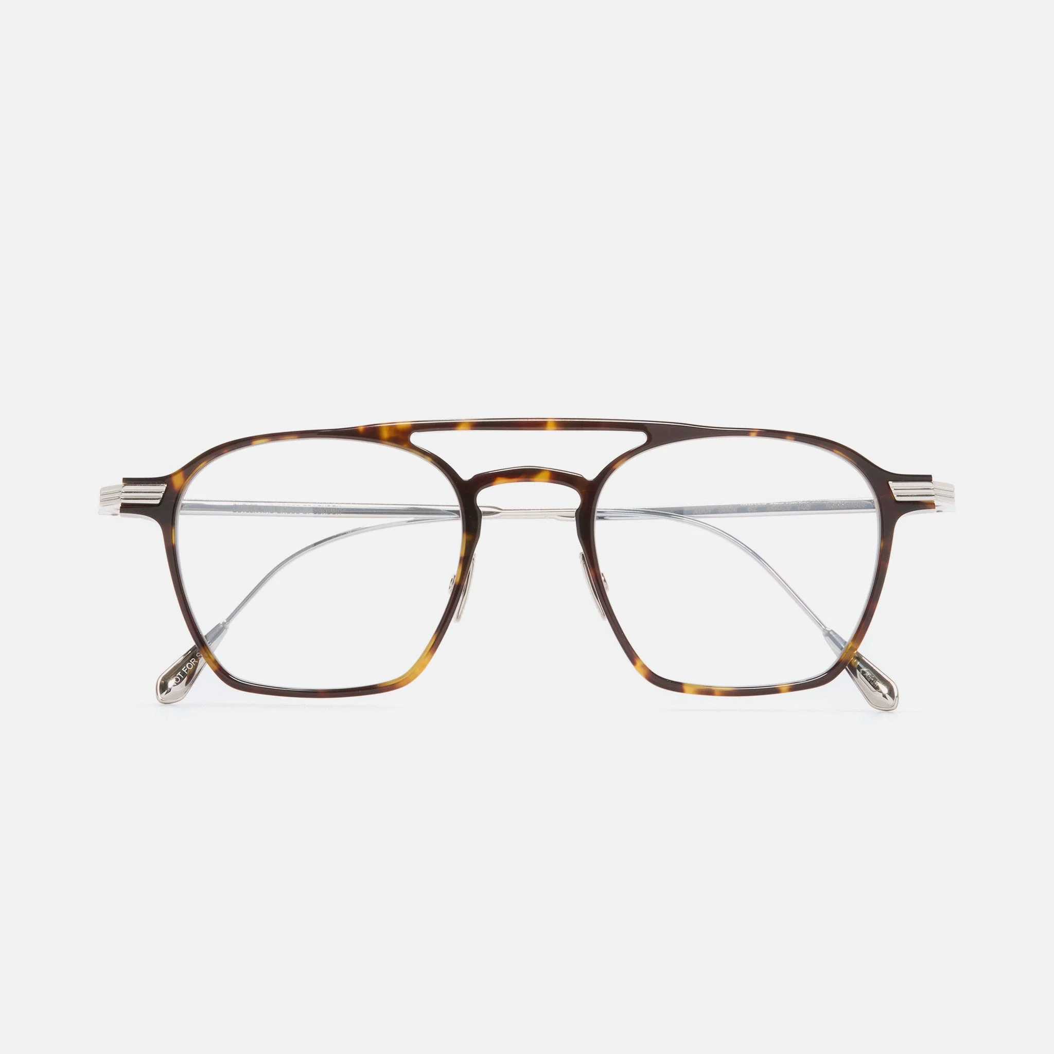 The classic navigator frame takes a new direction, courtesy of the 0009 optical. It is handcrafted from polished acetate and ultra-light metal with a raised double bridge and winged lugs. <!--td {border: 1px solid #cccccc;}br {mso-data-placement:same-cell;}--> Details - Double bridge - Oyster lugs - Teardrop temple tips - Adjustable nose pads - Logo engraved on inner temple - Handcrafted in Italy by expert craftspeople, read more about our craftsmanship story Size & Fit SKU: AUOP-0009-48-02 Frame shape: Round Lens width (mm): 48 Temple length (mm): 145 Bridge width (mm): 20