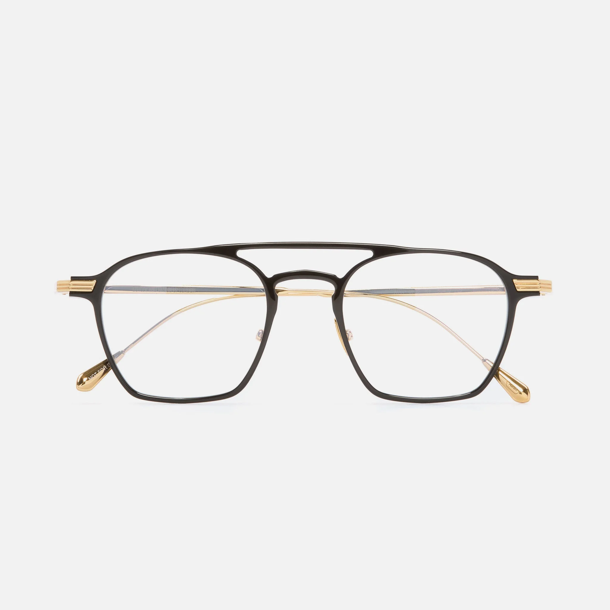 The classic navigator frame takes a new direction, courtesy of the 0009 optical. It is handcrafted from polished acetate and ultra-light metal with a raised double bridge and winged lugs. <!--td {border: 1px solid #cccccc;}br {mso-data-placement:same-cell;}--> Details - Double bridge - Oyster lugs - Teardrop temple tips - Adjustable nose pads - Logo engraved on inner temple - Handcrafted in Italy by expert craftspeople, read more about our craftsmanship story Size & Fit SKU: AUOP-0009-48-01 Frame shape: Round Lens width (mm): 48 Temple length (mm): 145 Bridge width (mm): 20