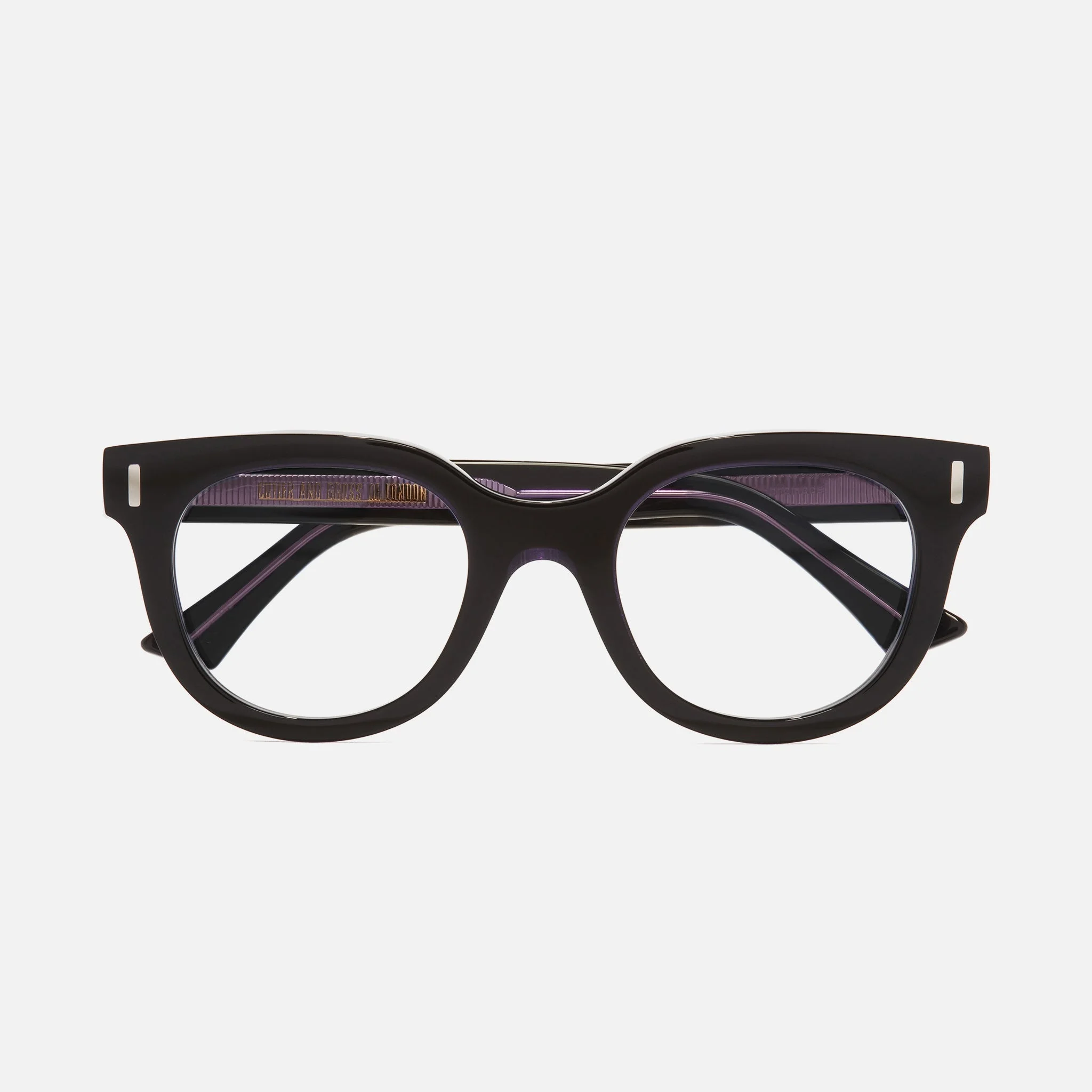 Clean-cut Bullion pins gild the front of this striking frame. It is handcrafted by Cutler and Gross artisans from 9mm-thick acetate and lightened with interior bevelling. Details - Bullion frontal pins - 5-barrel hinges - Fretboard core wire - Gold-foil logo on inner temple - Handcrafted in Italy Size & Fit Frame width: 135 mm Bridge width: 23 mm Temple length: 145 mm Lens width: 50 mm