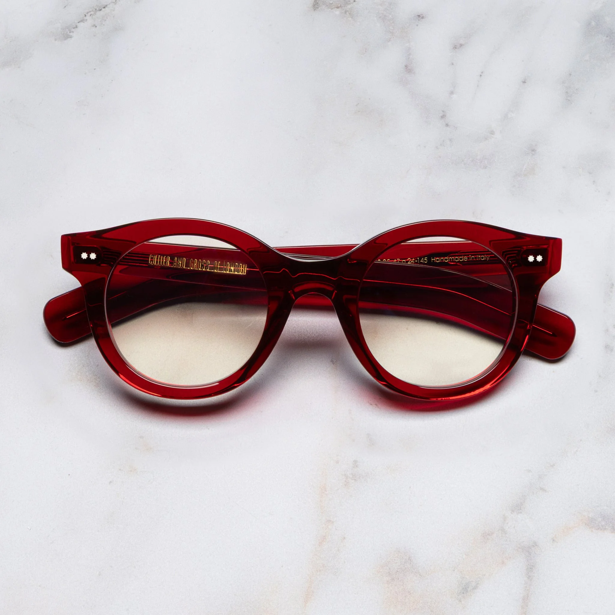 An evolution from an 80s archive frame, the 1390 optical is distinctly confident, characterised by an undulating browline and circular lenses. As seen on luminaries including Madonna and Manolo Blahnik. Details - Compass Star frontal and temple pins - 5-barrel hinges - Paddle temples - Deco core wire - Gold-foil logo on inner temple - Handcrafted in Italy by expert craftspeople, read more about our craftsmanship story Size & Fit SKU: CGOP-1390-47-05 Frame shape: Round Lens width (mm): 47 Temple length (mm): 145 Bridge width (mm): 24