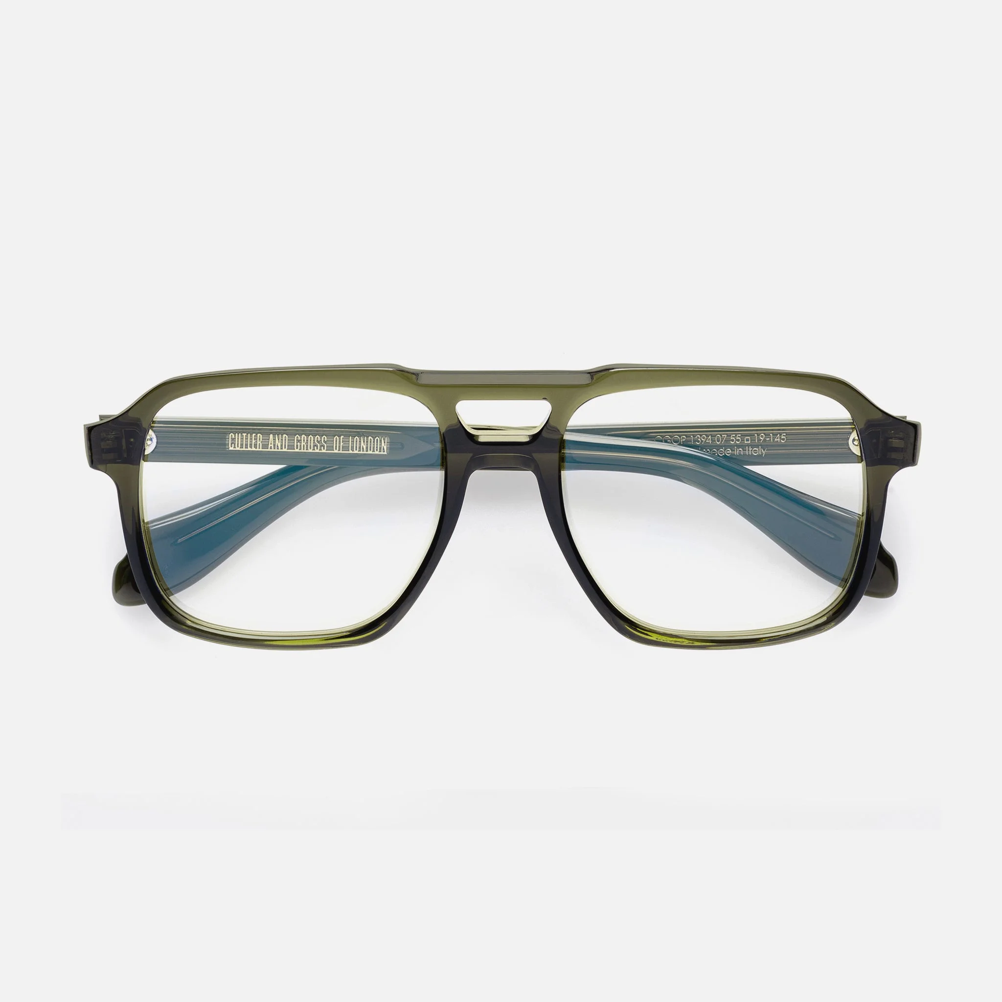 An archive Cutler and Gross frame from the 70s laid the foundations for the 1394 optical. It is handcrafted from acetate to a distinguished profile with squared lenses and a double bridge. Polished Compass Star pins detail the temples. Details - Compass Star temple pins - 5-barrel hinges - Fender temples - Deco core wire - Gold-foil logo on inner temple - Handcrafted in Italy by expert craftspeople, read more about our craftsmanship story Size & Fit SKU: CGOP-1394-55-07 Frame shape: Aviator Lens width (mm): 55 Temple length (mm): 145 Bridge width (mm): 19