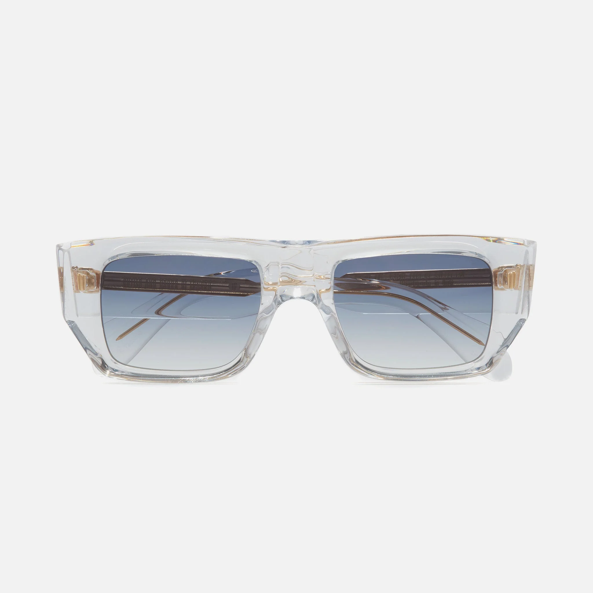 A square frame with heightened impact, the 1413 sunglass features a determined flat top and reversed nose bump. The chunky temples are structured with 7-barrel hinges and threaded with Cutler and Gross's signature Modernist core wire. Details - 100% UVA and UVB lenses - Oyster frontal pins - Compass Star temple pins - 7-barrel hinges - Fender temples - Modernist core wire - Gold-foil logo on inner temple - Handcrafted in Italy by expert craftspeople, read more about our craftsmanship story - Need help? Read our full Glossary of Terms Size & Fit SKU: CGSN-1413-53-04 Frame shape: Rectangle Temple length (mm): 150 Lens width (mm): 53 Bridge width (mm): 21