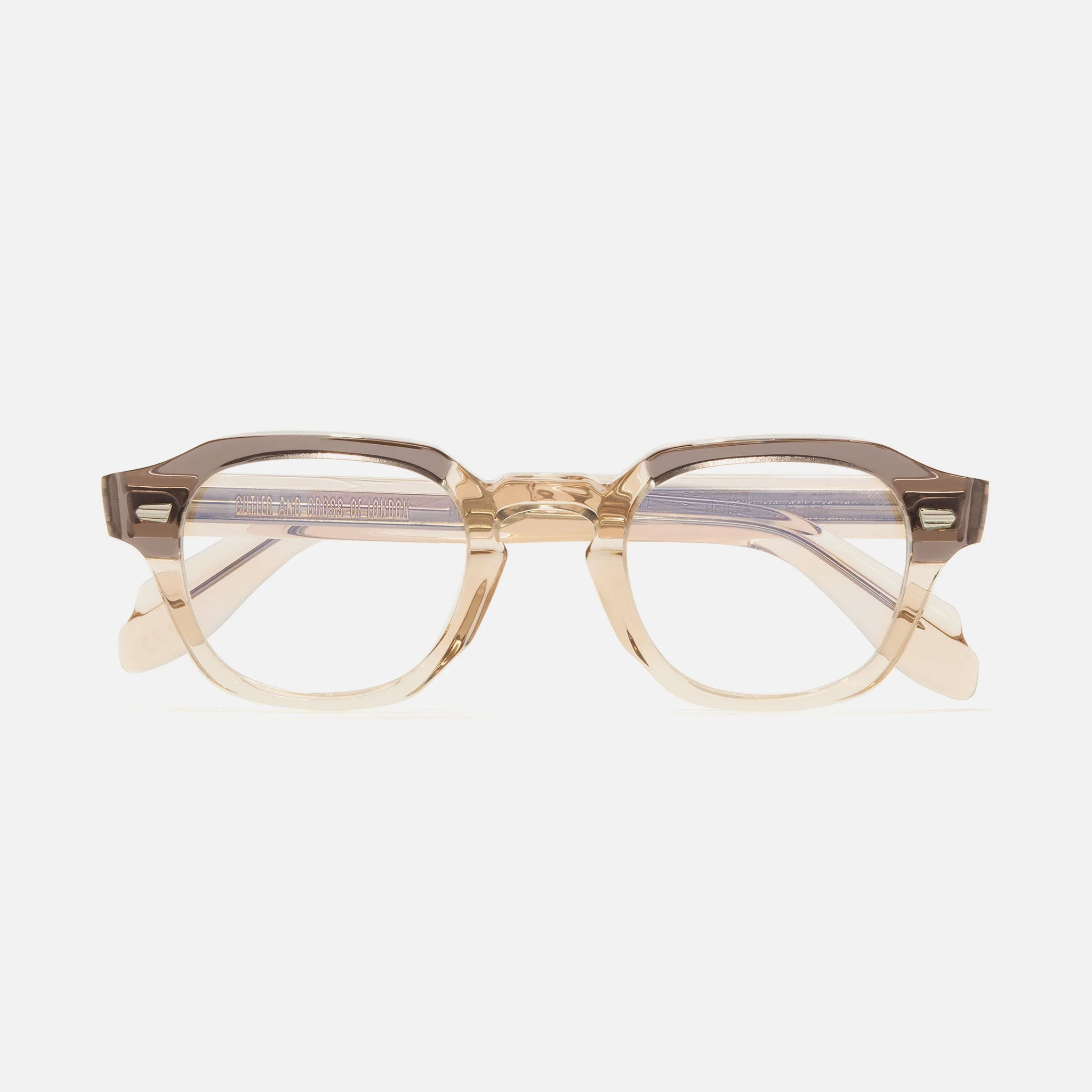 The 1420 optical is handcrafted with a unique stepped detail that reveals the intricate layers of laminate comprising each frame. Cutler and Gross's signature pins detail the frontal and temples. Each piece is handmade in our atelier over 270 hours. Details - Keyhole bridge - Oyster frontal pins - Compass Star temple pins - 5-barrel hinges - Fender temples - Deco core wire - Logo engraved on inner temple - Handcrafted in Italy by expert craftspeople, read more about our craftsmanship story Size & Fit SKU: CGOP-1420-47-04 Frame shape: Round Frontal width (mm): 145 Lens width (mm): 47 Temple length (mm): 145 Bridge width (mm): 24