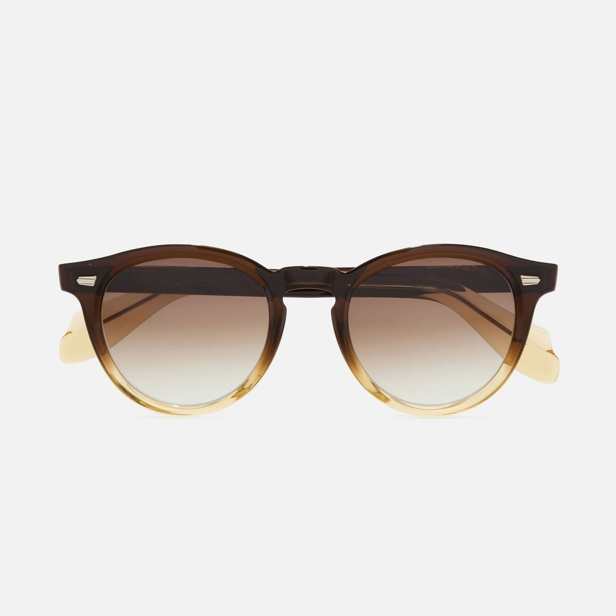 This round sunglass takes its cue from the classic Pantos frames made in our original workshop in the early 1970s. It is handcrafted over 262 hours with a keyhole bridge and curved browline that culminates in slender temples. High hinges lend a hint of cat-eye edge to the rounded shape. A limited production of 350 frames. Details - 100% UVA and UVB lenses - Keyhole bridge - Oyster frontal pins - Compass Star temple pins - 5-barrel hinges - Fender temples - Deco core wire - Logo engraved on inner temple - Handcrafted in Italy by expert craftspeople, read more about our craftsmanship story Size & Fit SKU: CGSN-9378-50-03 Frame shape: Round Frontal width (mm): 145 Temple length (mm): 150 Lens width (mm): 50 Bridge width (mm): 21