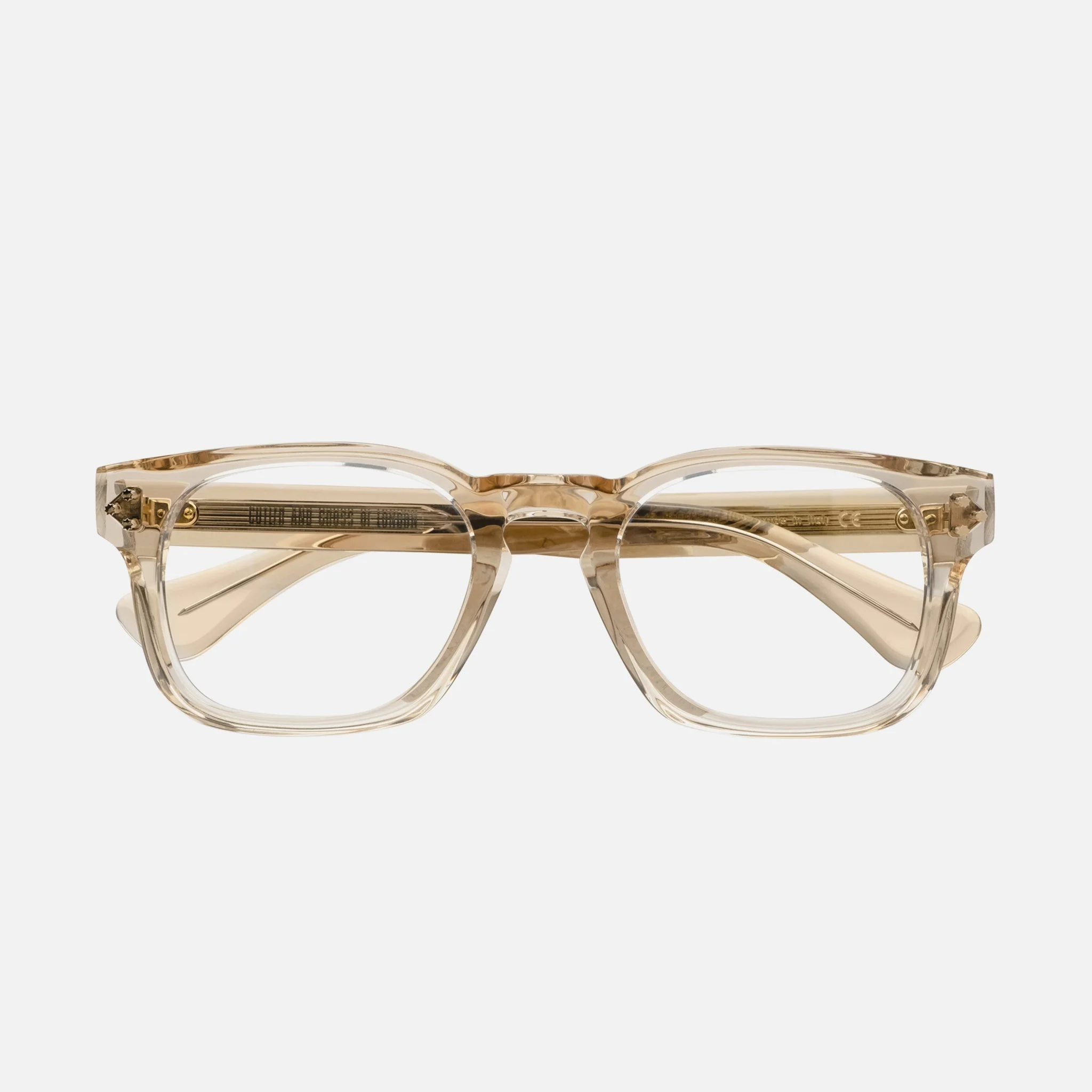 By amplifying the design details of the 1389, adding chiselled angles to attain a masculine outline and increasing the eye size to 53mm, the 9768 is born. The new 8 star deco rivets are the latest reincarnation of a pin design that has been part of our brand DNA since 1988. As with the 1389, the 9768 also shares the recessed milling to create an inset bridge for unparalleled comfort, which is expected from any Cutler and Gross frame. Details - Handcrafted in Italy by expert craftspeople, read more about our craftsmanship story - New Compass 8 point star functional rivets - Vintage Cutler and Gross 3 rivet formation from 1989 - Deco core wire - Tailored high-line temple - Akulon lined screws with 5-barrel hinges hardware - Signature Gold Foil Logo inside right temple - Need help? Read our full Glossary of Terms Size & Fit SKU: CGOP-9768-53-03 Frame shape: Square Lens width (mm): 53 Temple length (mm): 145 Bridge width (mm): 22
