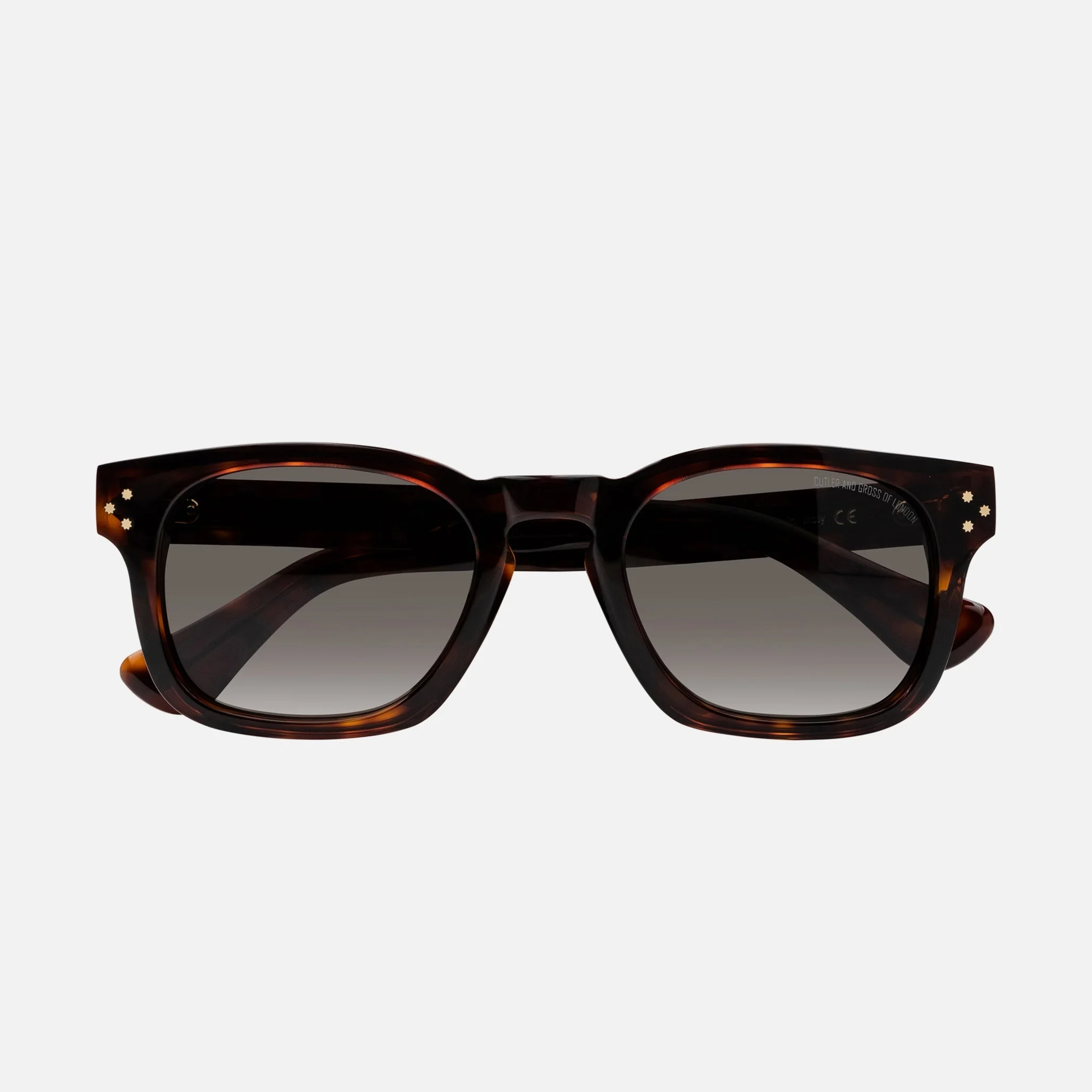 By amplifying the design details of the 1389, adding chiselled angles to attain a masculine outline and increasing the eye size to 53mm, the 9768 is born. The new 8 star deco rivets are the latest reincarnation of a pin design that has been part of our brand DNA since 1988. As with the 1389, the 9768 also shares the recessed milling to create an inset bridge for unparalleled comfort, which is expected from any Cutler and Gross frame. Details - Handcrafted in Italy by expert craftspeople, read more about our craftsmanship story - New Compass 8 point star functional rivets - Vintage Cutler and Gross 3 rivet formation from 1989 - Deco core wire - Tailored high-line temple - Akulon lined screws with 5-barrel hinges hardware - Signature Gold Foil Logo inside right temple - Need help? Read our full Glossary of Terms Size & Fit SKU: CGSN-9768-53-02 Frame shape: Square Temple length (mm): 145 Lens width (mm): 53 Bridge width (mm): 22