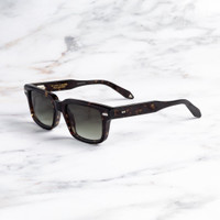 Created in collaboration with Breitling, the 0004 sunglass is engineered with subtle but significant details that nod to the watchmaker's Superocean Heritage timepiece. The frontal is gilded with a Milanese bevelled pin inspired by the original watch strap, while a luminous lacquer-filled arrowhead marks the inner temple tips. Details - Breitling Eyewear Collaboration - 100% UVA and UVB lenses - Superocean frontal pins - Bullion temple pins - Luminous arrowhead on inner temples - Superocean Heritage core wire - Gold-foil logo on inner temples - Handcrafted from cellulose acetate - SKU: BRSN-0004-52 Size & Fit Size: Wide Frame width: 150 mm Temple length: 150 mm Lens width: 52 mm Bridge width: 21 mm Bridge fit: Medium Size Guide. Find your size and fit. Face shape: Round, oval, square, heart Discover the Face Shape Guide.