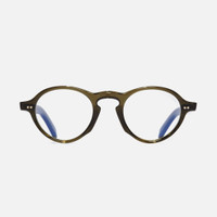 The GR08 takes notes from the 60s, and playwright Arthur Miller's bespectacled aesthetic. It is shaped with an undulating browline that culminates in winged lugs. Compass Star pins and Fender temples add signature detail. Designed for slighter face shapes, the Graham Cutler collection scales our bold aesthetic into lighter proportions. Details - Keyhole bridge - Integrated nosepads - Winged lugs - Compass Star frontal and temple pins - Five-barrel hinges - Deco core wire - Fender temple tips - Gold-foil logo inside temple - Handmade in Italy Size & Fit SKU: CGOP-GR08-47-03 Frame shape: Round Lens width (mm): 47 Temple length (mm): 145 Bridge width (mm): 22