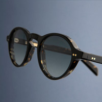 The elegant academia of playwright Arthur Miller in the 60s shaped the GR08 sunglass. It is handcrafted with an undulating browline that culminates in winged lugs. Compass Star pins and Fender temples add signature detail. Designed for slighter face shapes, the Graham Cutler collection scales our bold aesthetic into lighter proportions. Details - Keyhole bridge - Integrated nosepads - Winged lugs - Compass Star frontal and temple pins - Five-barrel hinges Deco core wire - Fender temple tips - Gold-foil logo inside temple - Handmade in Italy Size & Fit SKU: CGSN-GR08-47-02 Frame shape: Round Temple length (mm): 145 Lens width (mm): 47 Bridge width (mm): 22